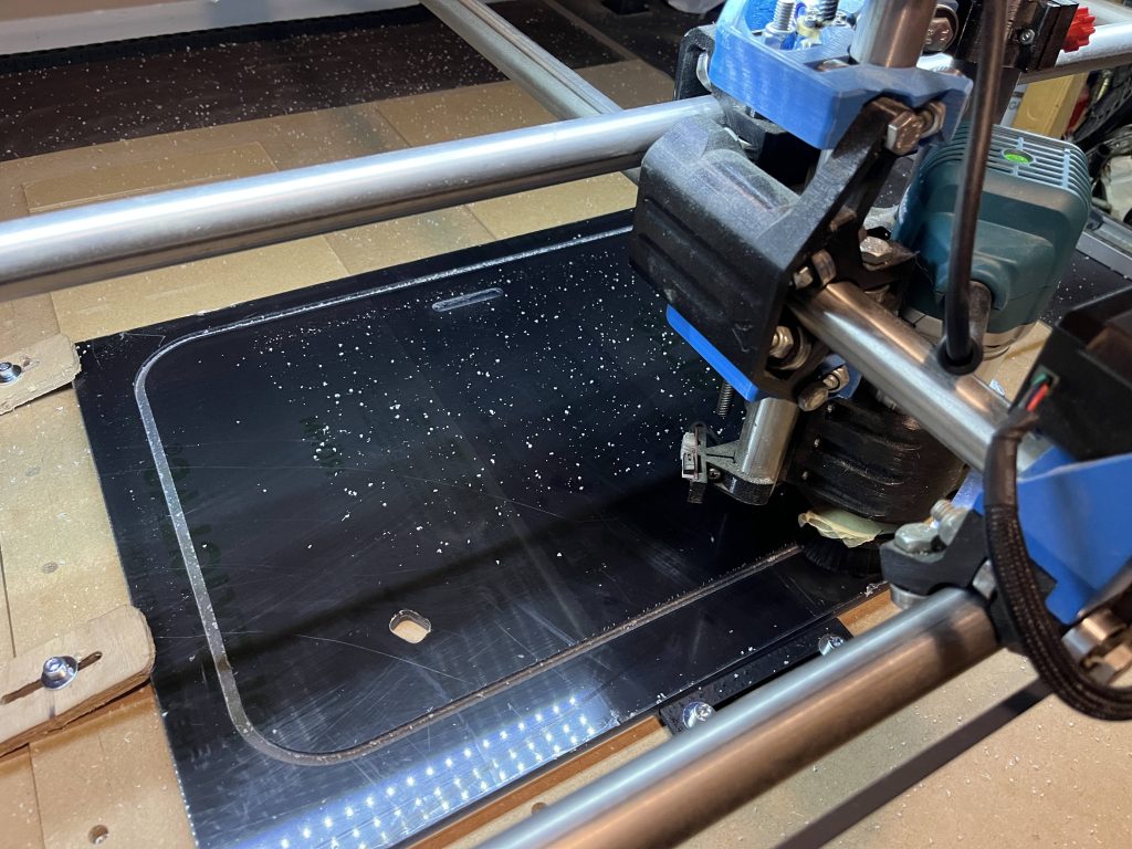 Wir beginnen den Bulli leer zu räumen. Philipp kommt gegen Mittag an. So hatte er zu Hause noch einige Stunden Zeit um die Fräse und den 3D-Drucker laufen zu lassen.