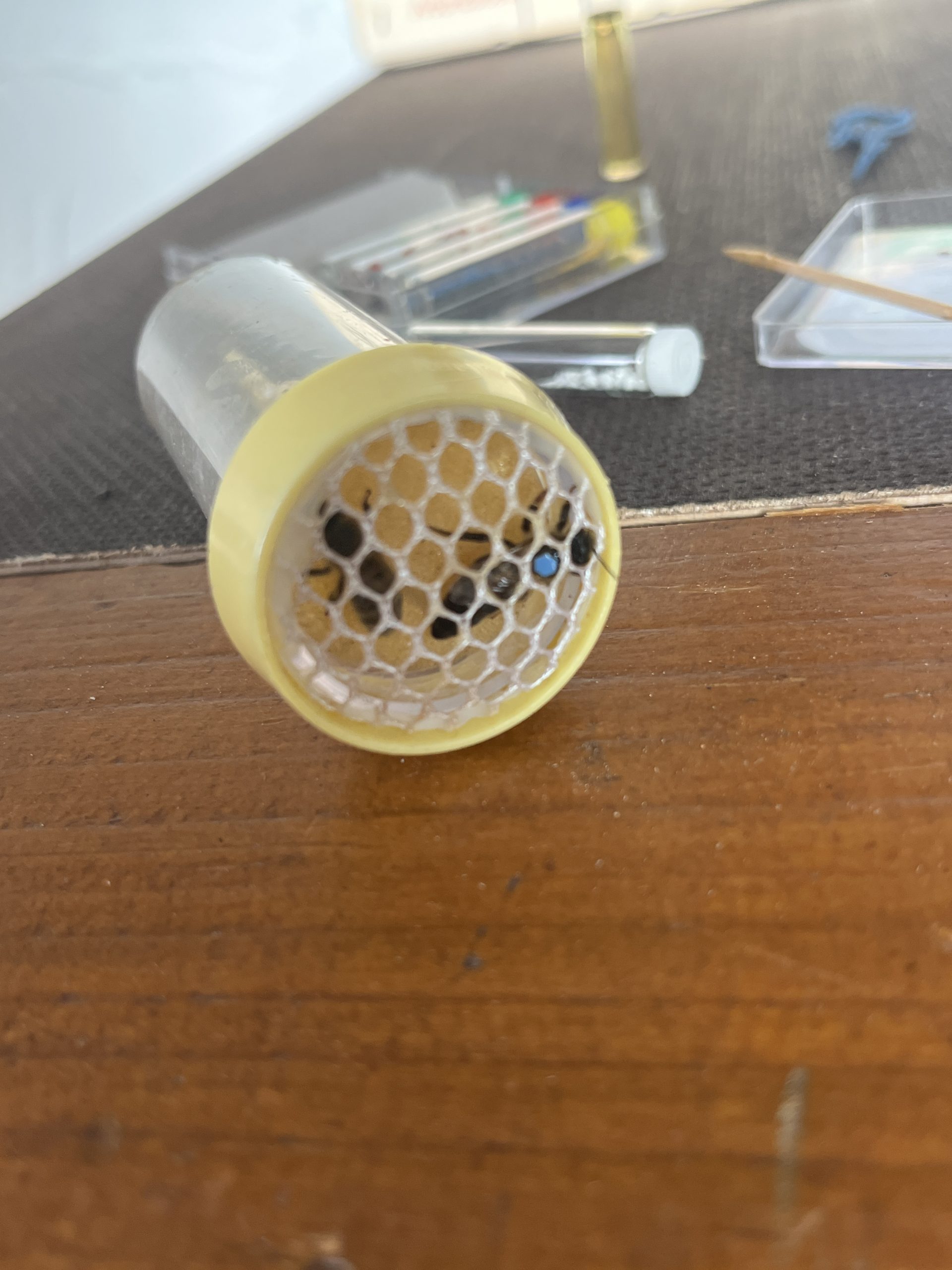 Eine Bienenkönigin bekommt noch schnell eine Kennzeichnung – Blau ist die Farbe des Jahres 2025
