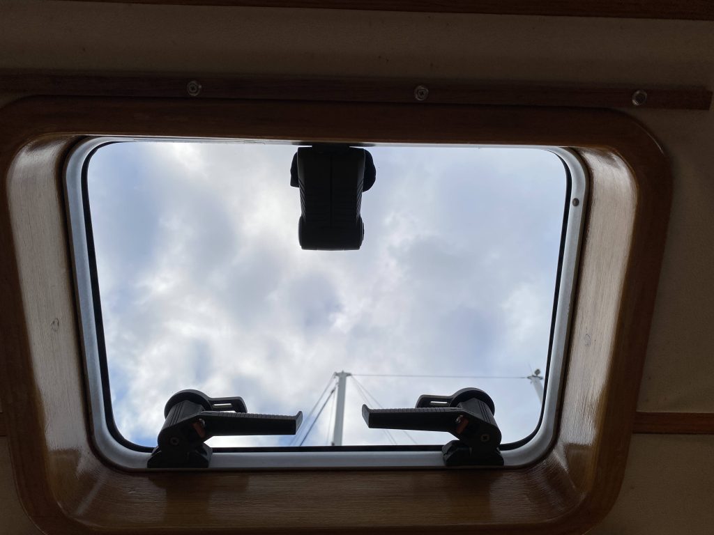 Außerdem tauschen wir die Luke über der Pantry. Philipp hat das Plexiglas zuvor zu Hause gefräst, es passt hervorragend. Was ein Unterschied, jetzt lässt es sich lässig in den Himmel blicken.