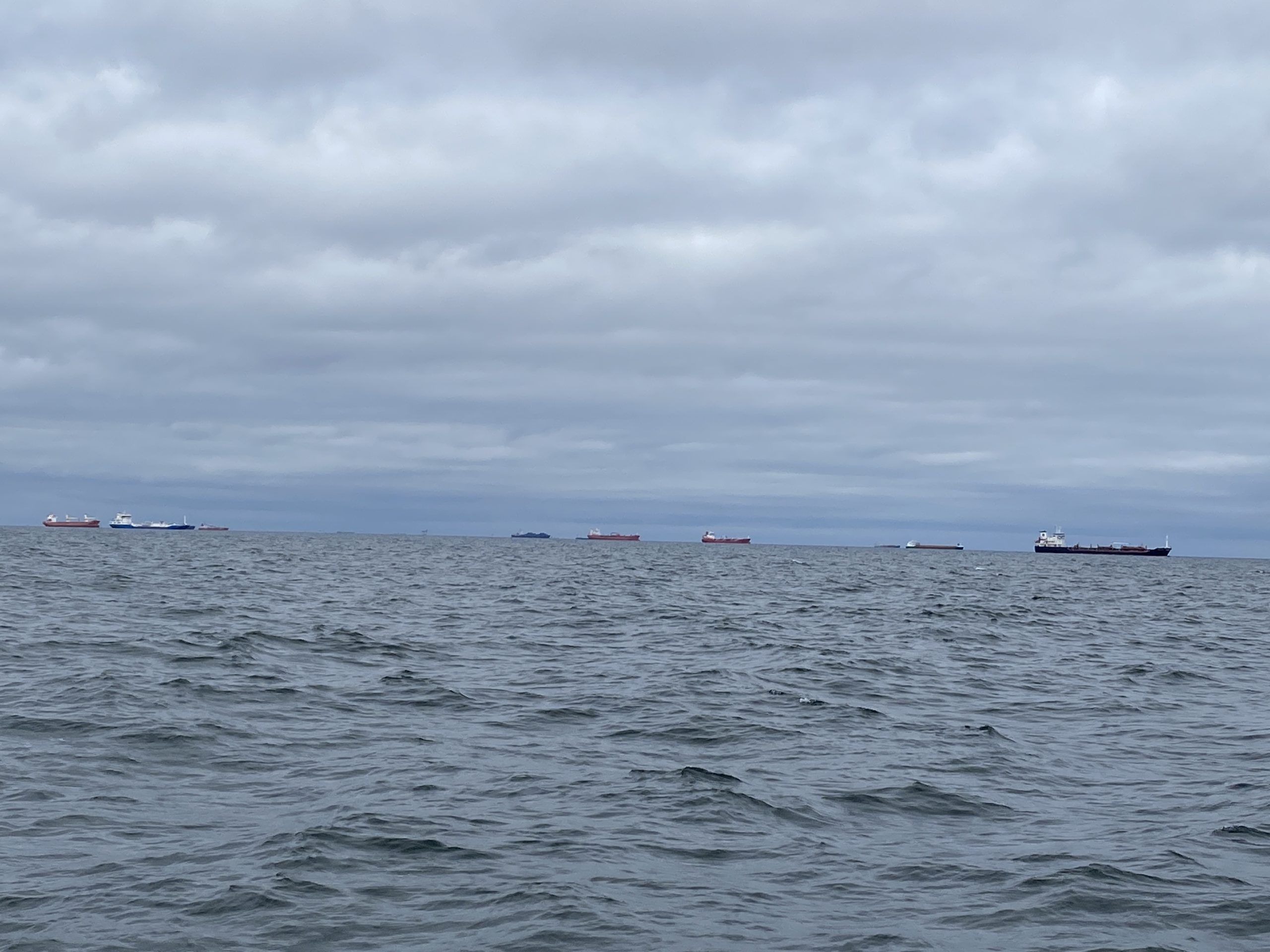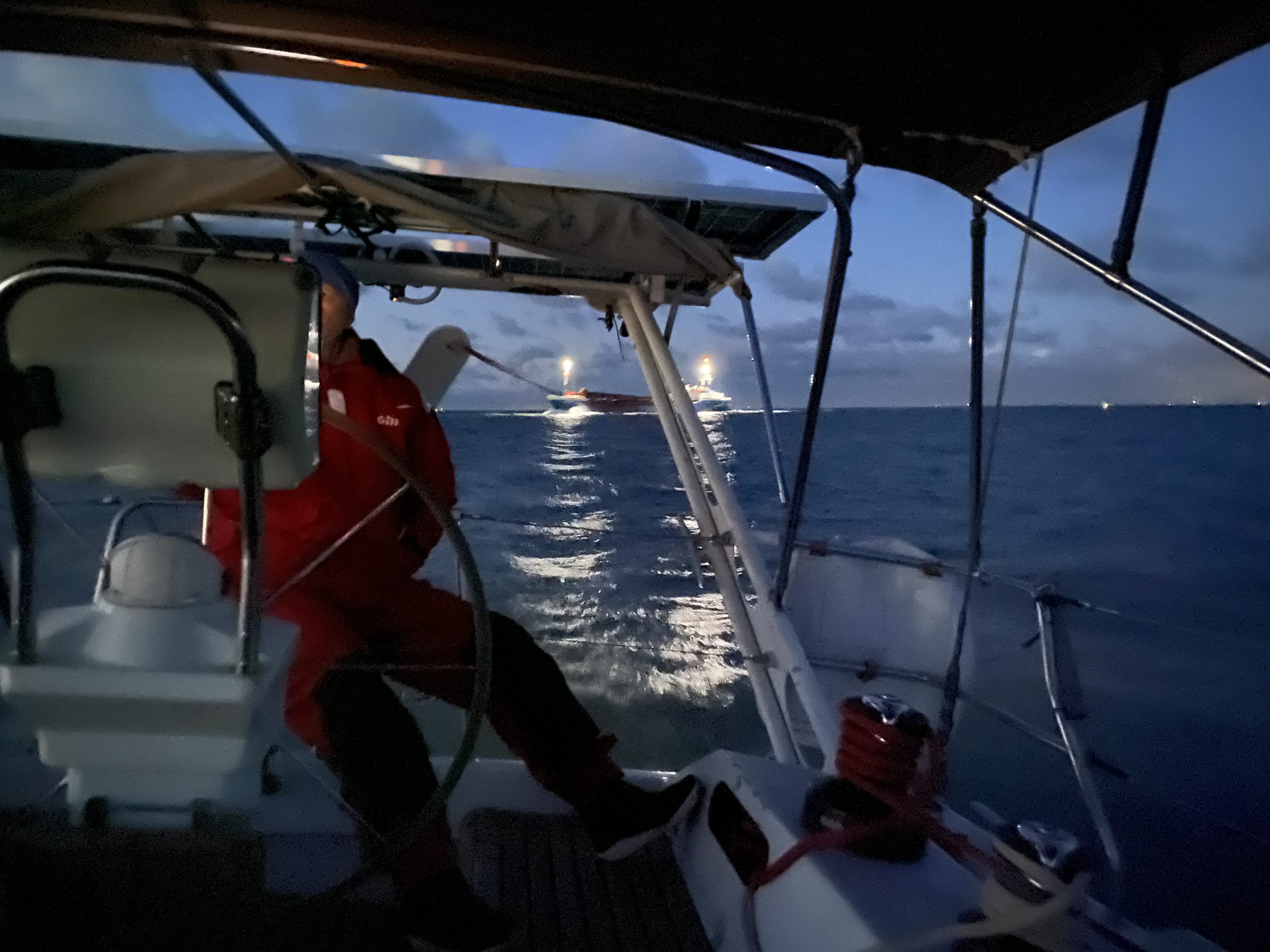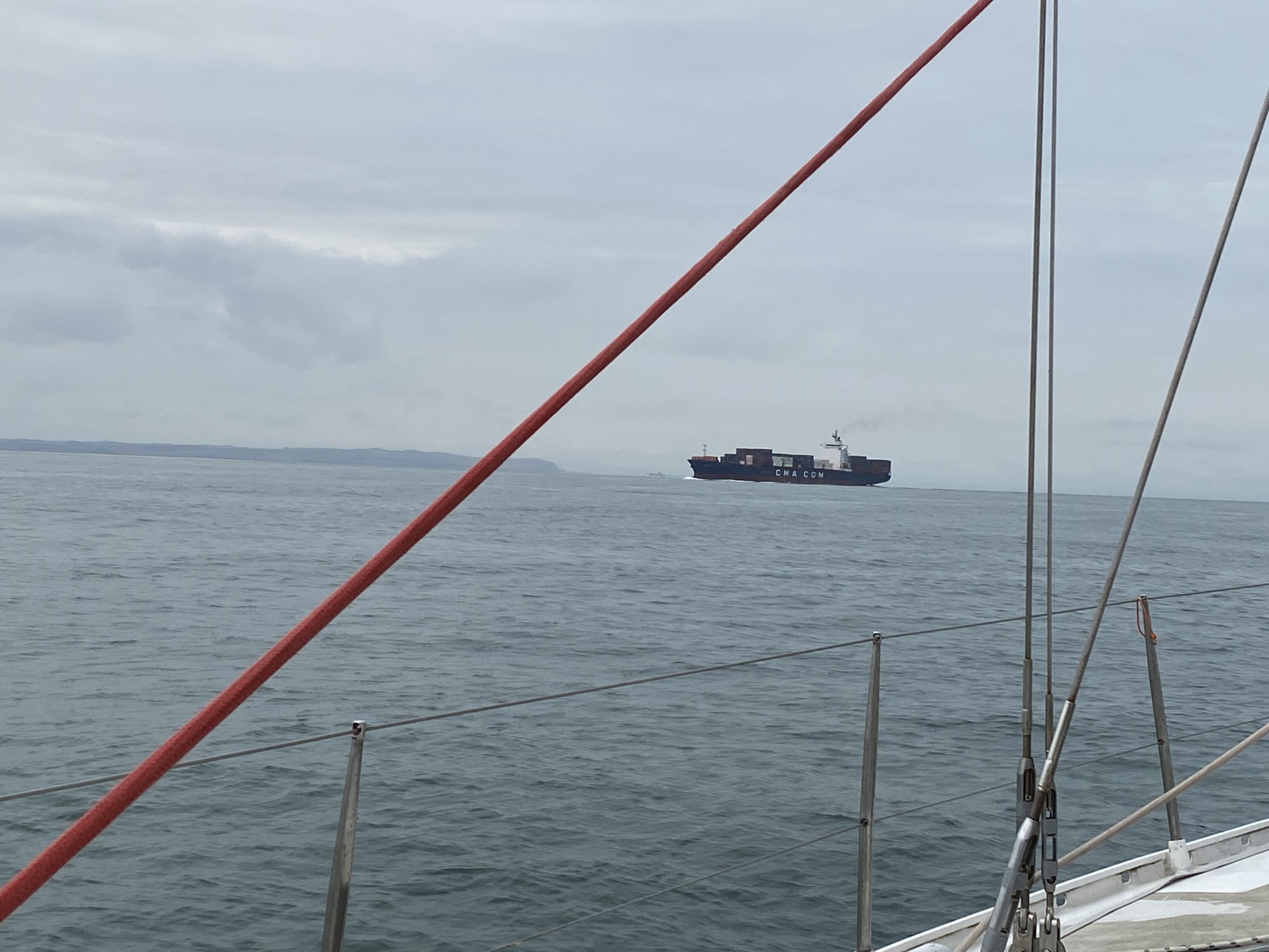Auf dem Weg kommen wir an vielen Schiffen vorbei. Manche sind sie unterwegs und zwischendrin kreuzen wir große Wasserstraßen. Zwischen riesigen Frachtern, Kreuzfahrtschiffen, Tankern und Fähren segeln wir dann hindurch. Das passt nicht immer auf Anhieb, die Schiffe sind im Gegensatz zu uns deutlich schneller. Manchmal müssen wir den Motor starten um passend aus dem Weg zu kommen. Bisher waren uns alle Lotsen wohl gesonnen, auch wenn sie uns schon andere Aufmerksamkeit zukommen lassen müssen als den dicken Pötten, die sind einfach vorhersehbarer unterwegs.