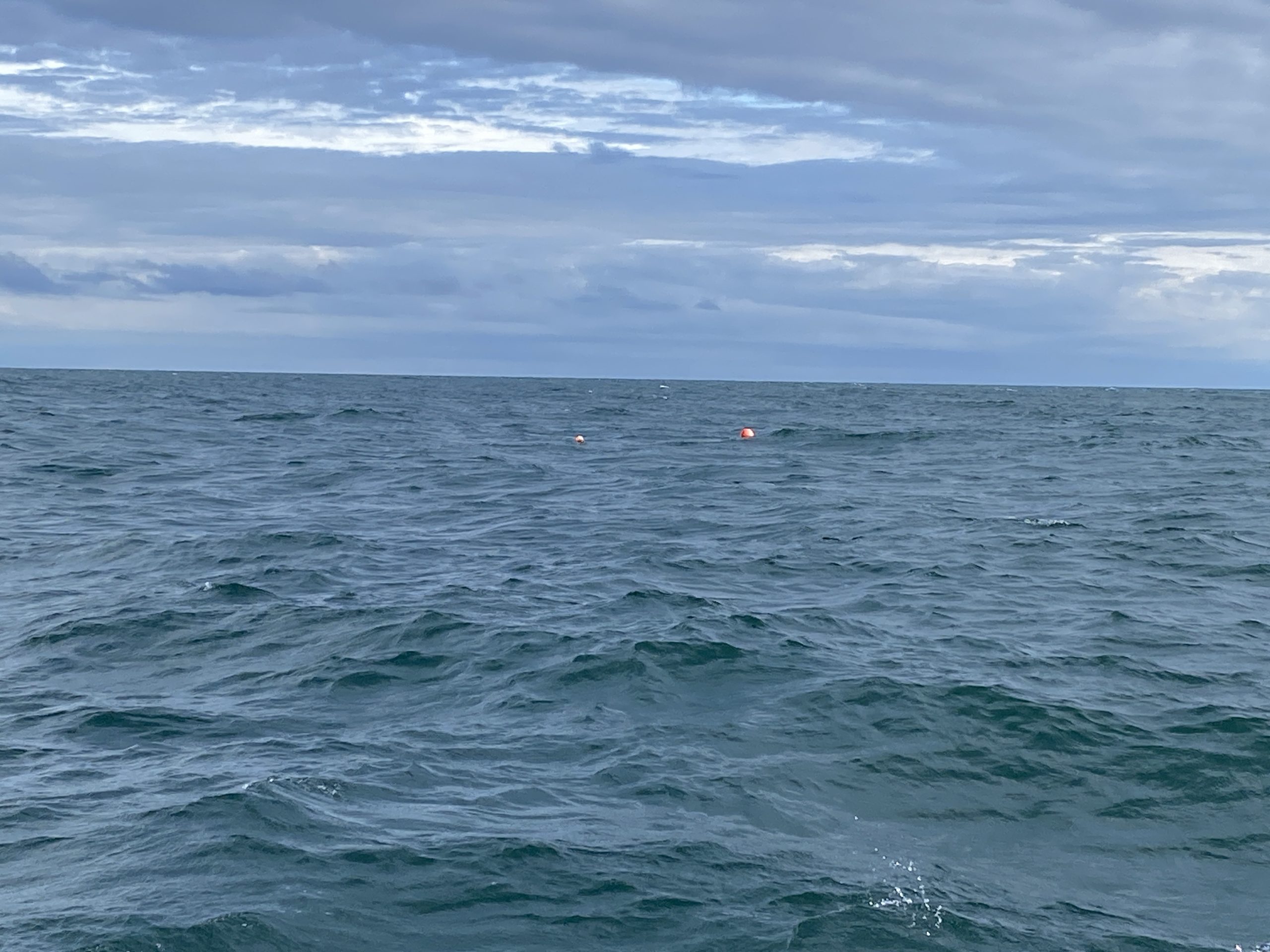 Ab der Südwestspitze haben wir Wind gegenan und behelfen uns mit der Kraft des Diesels. Unterwegs liegen viele Reusen aus, die wir gut umfahren können. Einmal sind wir so dicht dran, dass wir schnell den Motor in Leerlauf schalten um nicht die Leine um den Propeller zu wickeln, fahren aber doch knapp dran vorbei.