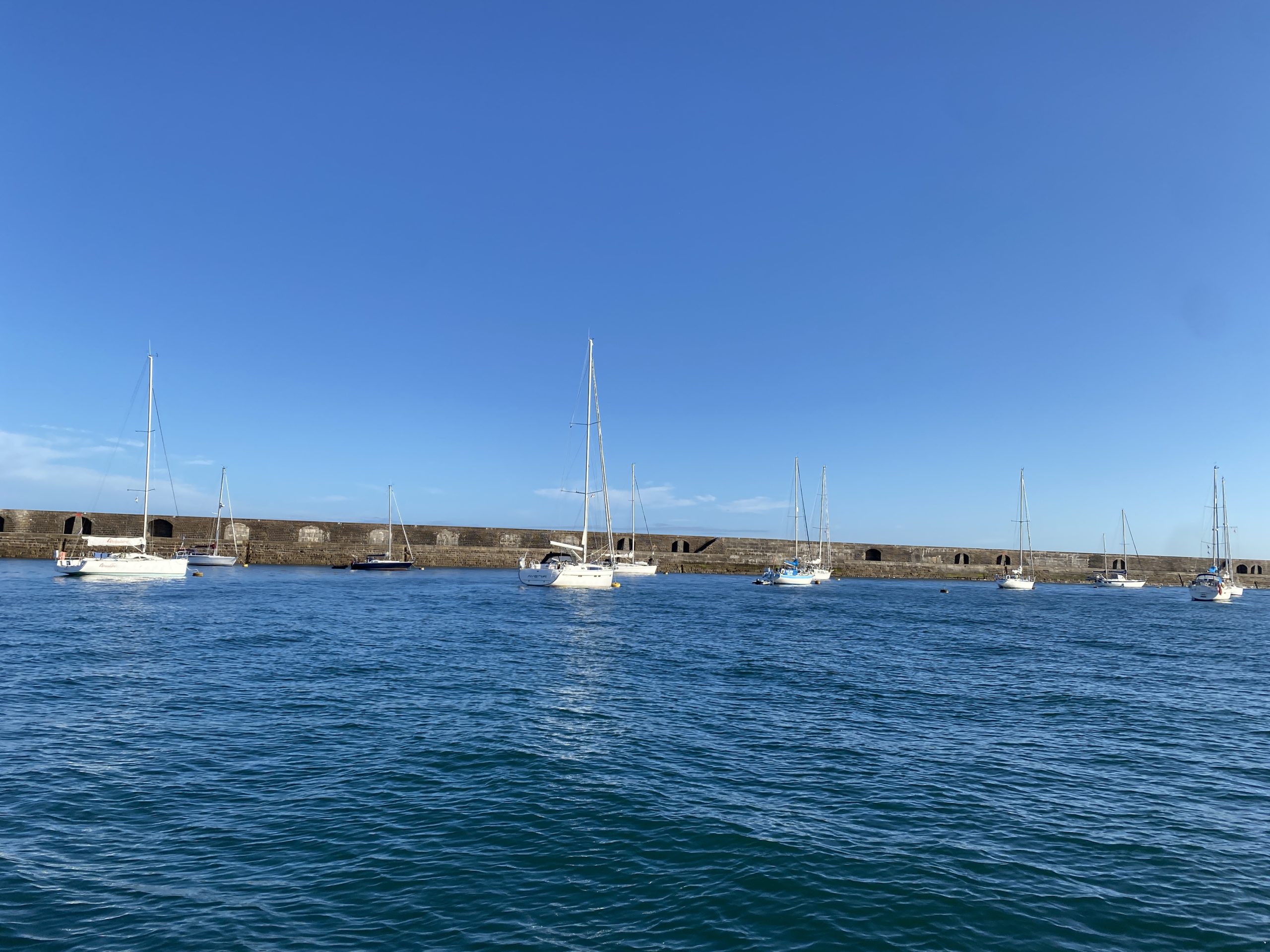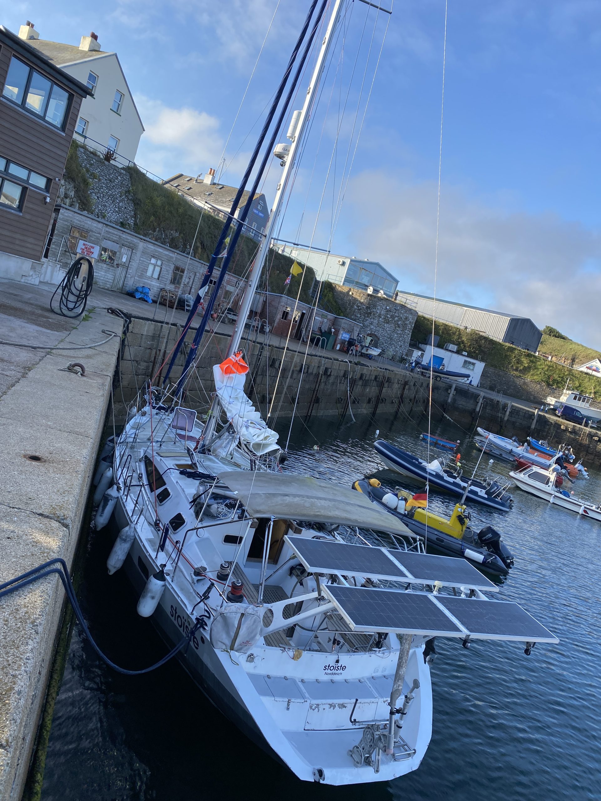 Da liegt sie unsere Stoïste an der Tankstelle im Hafen von Alderney.