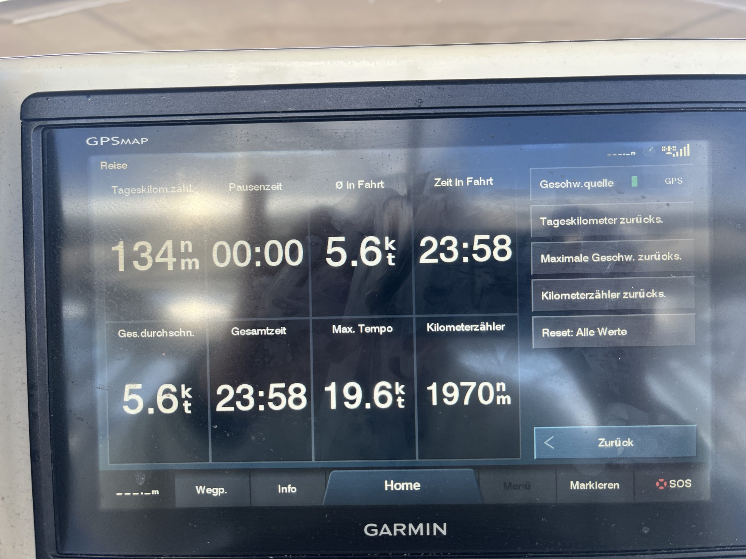Das wir schneller unterwegs sind zeigt unser Etmal von 134nm, also die Strecke, welche wir zwischen gestern Mittag und heute Mittag zurückgelegt haben. Die Tage zuvor segelten wir etwa 100-120nm pro 24 Stunden.