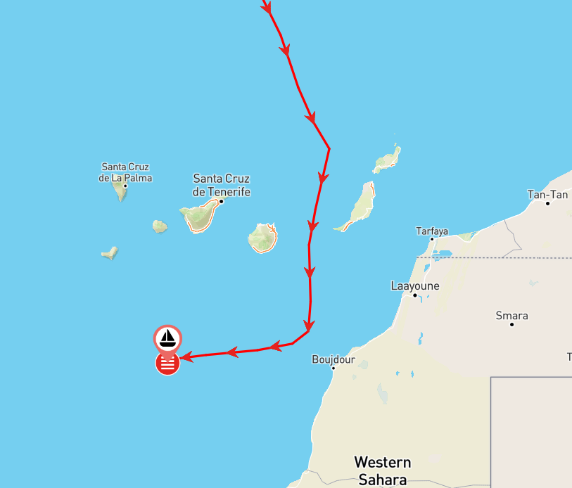 Der Tag beginnt wieder wolkenverhangen vor der Küste Afrikas. Wir laufen wegen des Windes und der geografischen Form Afrikas immer weiter auf die Küste zu. Das hat zwei Nachteile, erstens nimmt der Schiffsverkehr deutlich zu und es sind auch immer wieder Fischer unterwegs, welche kein AIS Signal aussenden und zweitens wird sich in dem Bereich in den nächsten Tagen ein Hoch ausbilden, das den Wind deutlich reduzieren wird. Daher fahren wir am späten Nachmittag eine Wende, um die Nacht über nach Westen zu fahren.