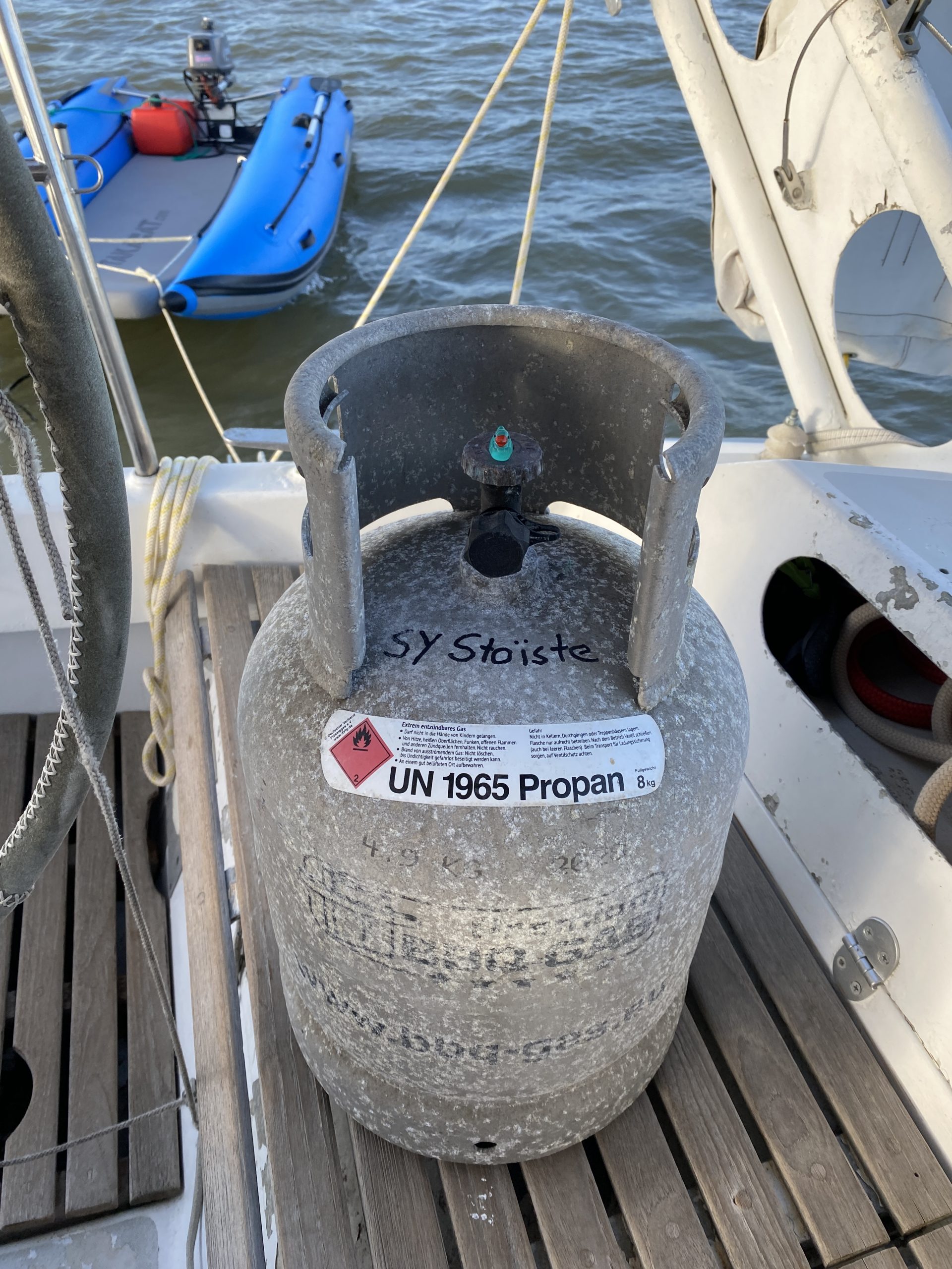 Tatsächlich ist die Flasche gefüllt. Ich bekomme einen Zettel und werde ins Büro geschickt. Dort werden mein Name, der des Schiffes und das Herkunftsland abgefragt. Dann zahle ich gegen Beleg umgerechnet 14 Euro und kann die Flasche mitnehmen. In Deutschland muss ich in der Regel 40km fahren um diese Flasche zu tauschen.