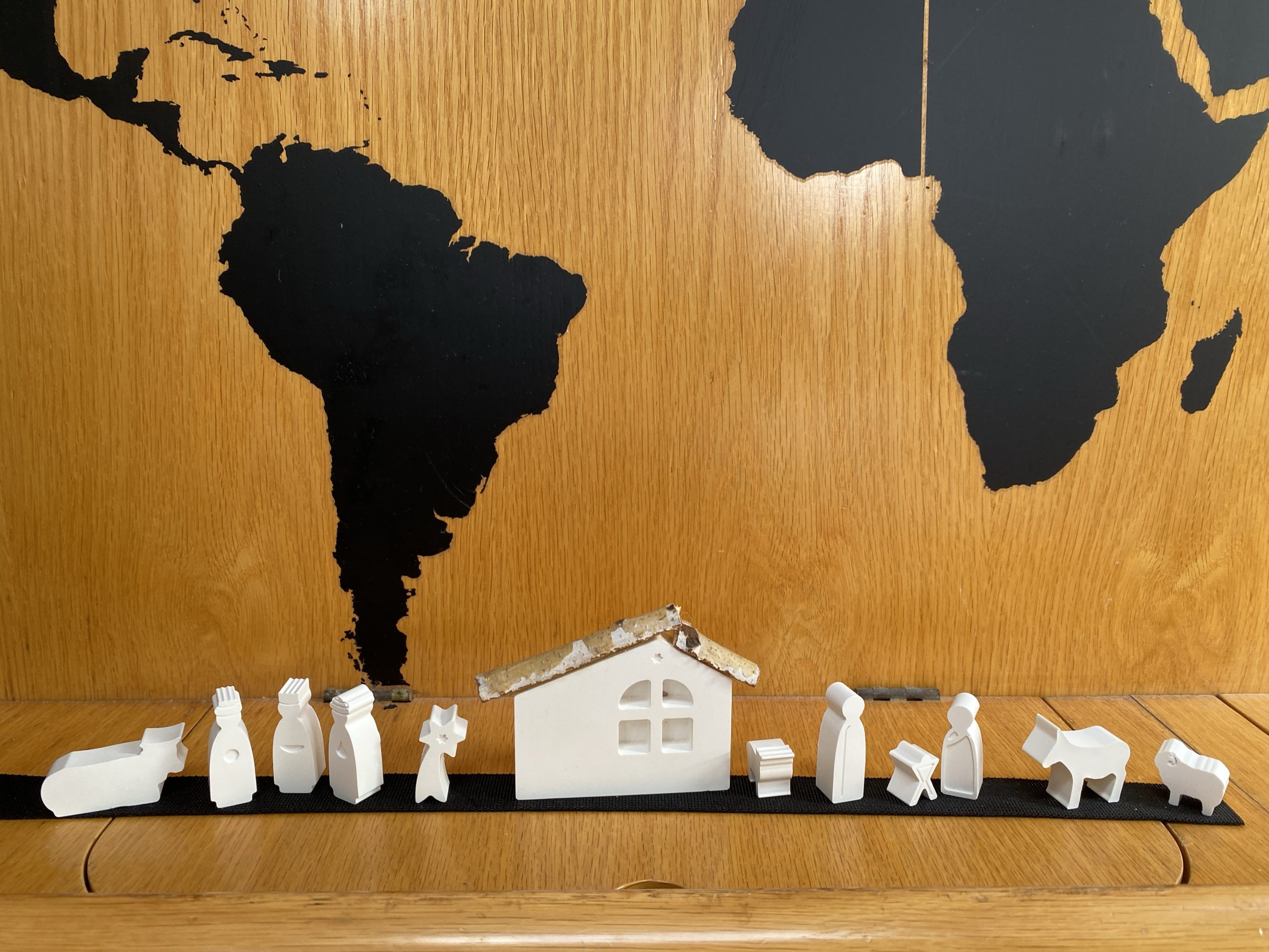 Die Krippe musste mit doppelseitigem Klebeband fixiert werden, steht aber trotzdem auf wackligem Posten (Danke Regina).