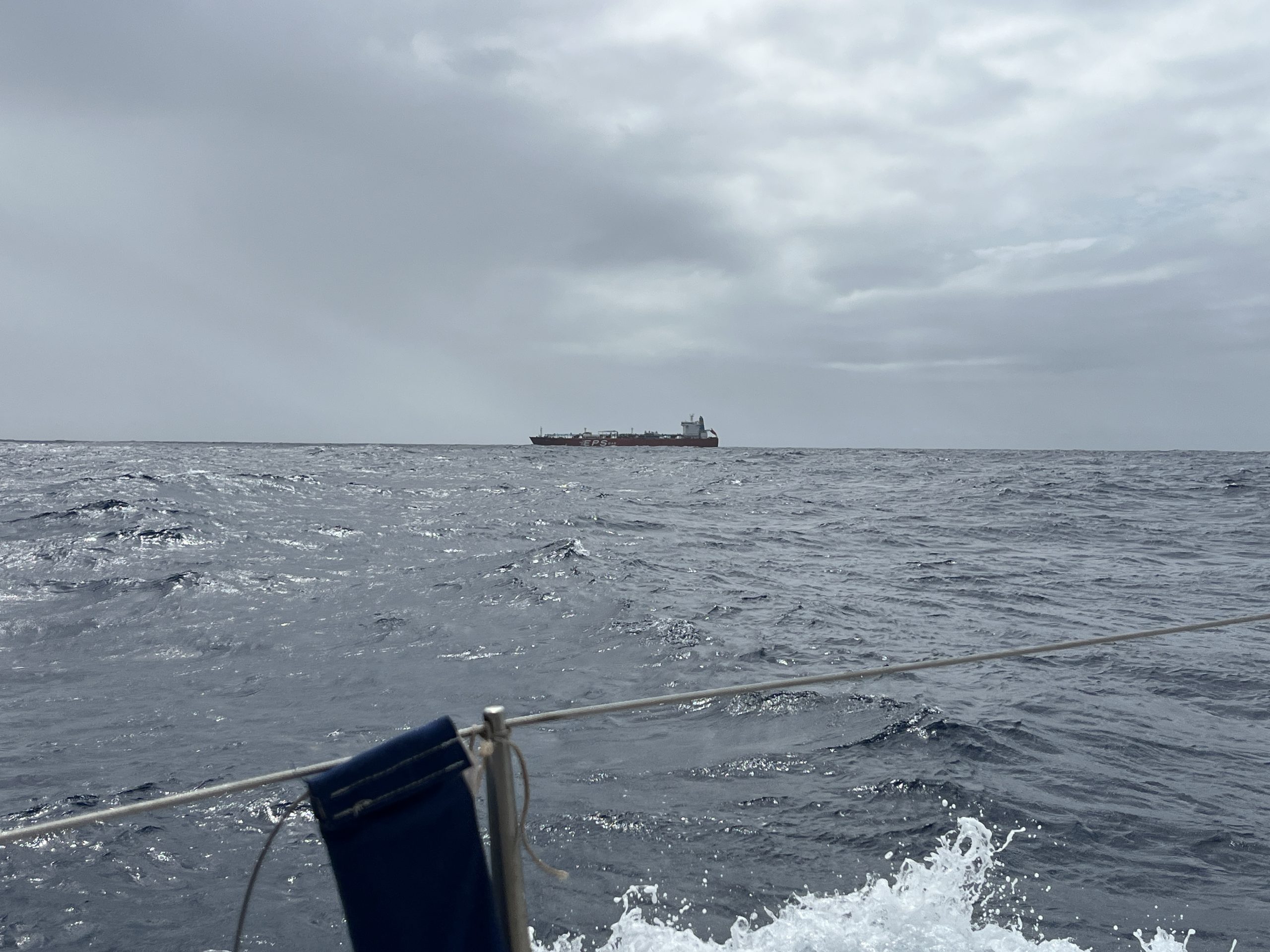 Bisher erst das zweite große Schiff, das uns in Sichtweite passiert.