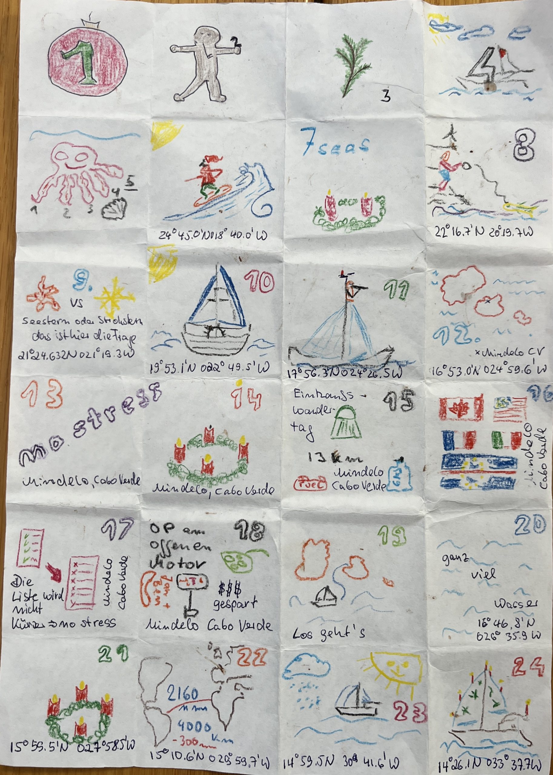 Der Tag ist komplett bedeckt und unser Energiehaushalt leidet an der geringen Einstrahlung auf unsere Solarmodule. Am Abend müssen wir tatsächlich den Dieselmotor für zwei Stunden laufen lassen, um die Batterien zu laden und den Wassermacher in Betrieb zu nehmen.
