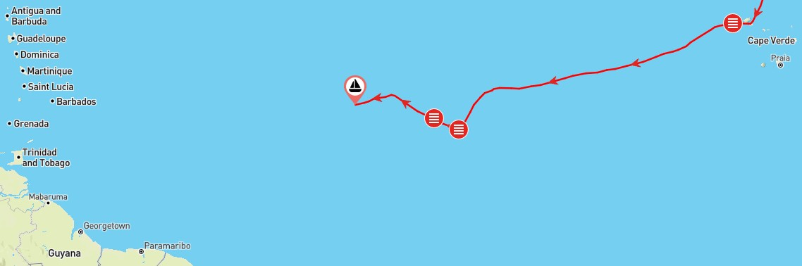 11. Tag auf See 1121nm bis Grenada letztes Etmal 108nm Richtung Ziel