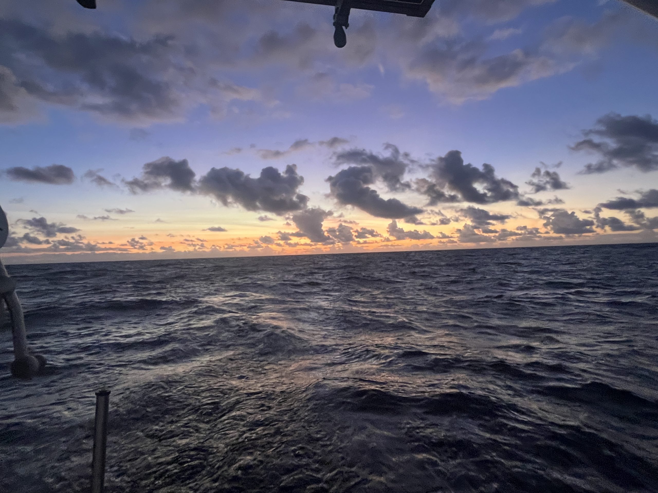 Da wir das letzte Brot verbraucht haben, gibt es zum Frühstück einen Grießbrei mit Mango aus der Dose. Die Dose haben wir 2021 mit dem Boot vom Vorbesitzer erworben haben, die Mango schmeckt so wie man sich Mango aus der Dose vorstellt. Das Angeln ist den Tag über nicht erfolgreich, da unsere Köder für die Raubfische einfach zu langsam durch das Wasser gleiten und diese sich nicht so leicht täuschen lassen. Immerhin gibt es heute keine toten fliegenden Fische zu beklagen.