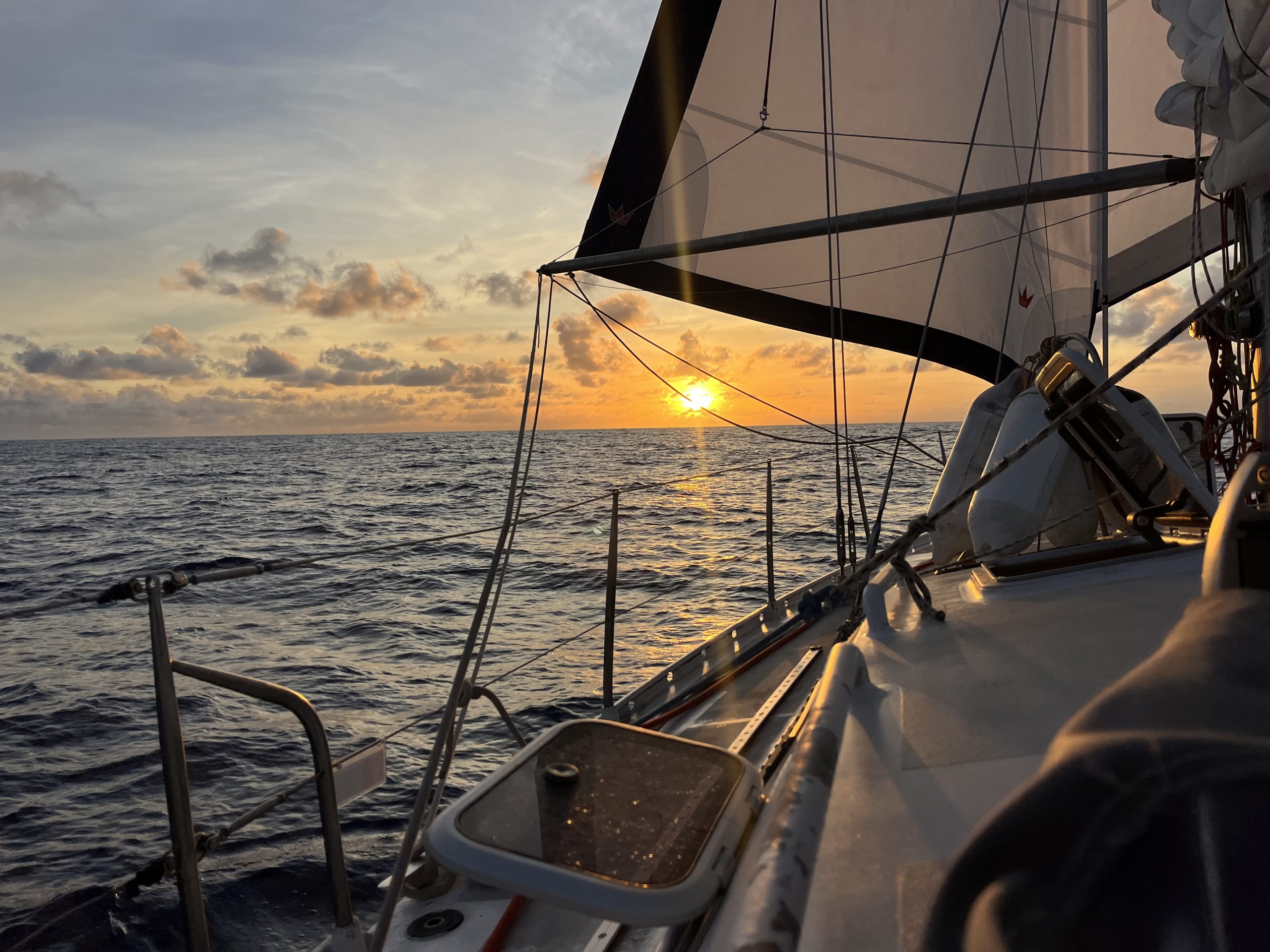 Der Tag fängt sehr ruhig an. Wie angekündigt ist der Wind deutlich eingeschlafen. Übrig sind noch 7-8kt Wind, wir schleichen mit 2-3kt Fahrt Richtung Grenada. Gott sei Dank ist die Dünung sehr gering und damit schaukelt das Boot nur in einem gut erträglichen Maß.
