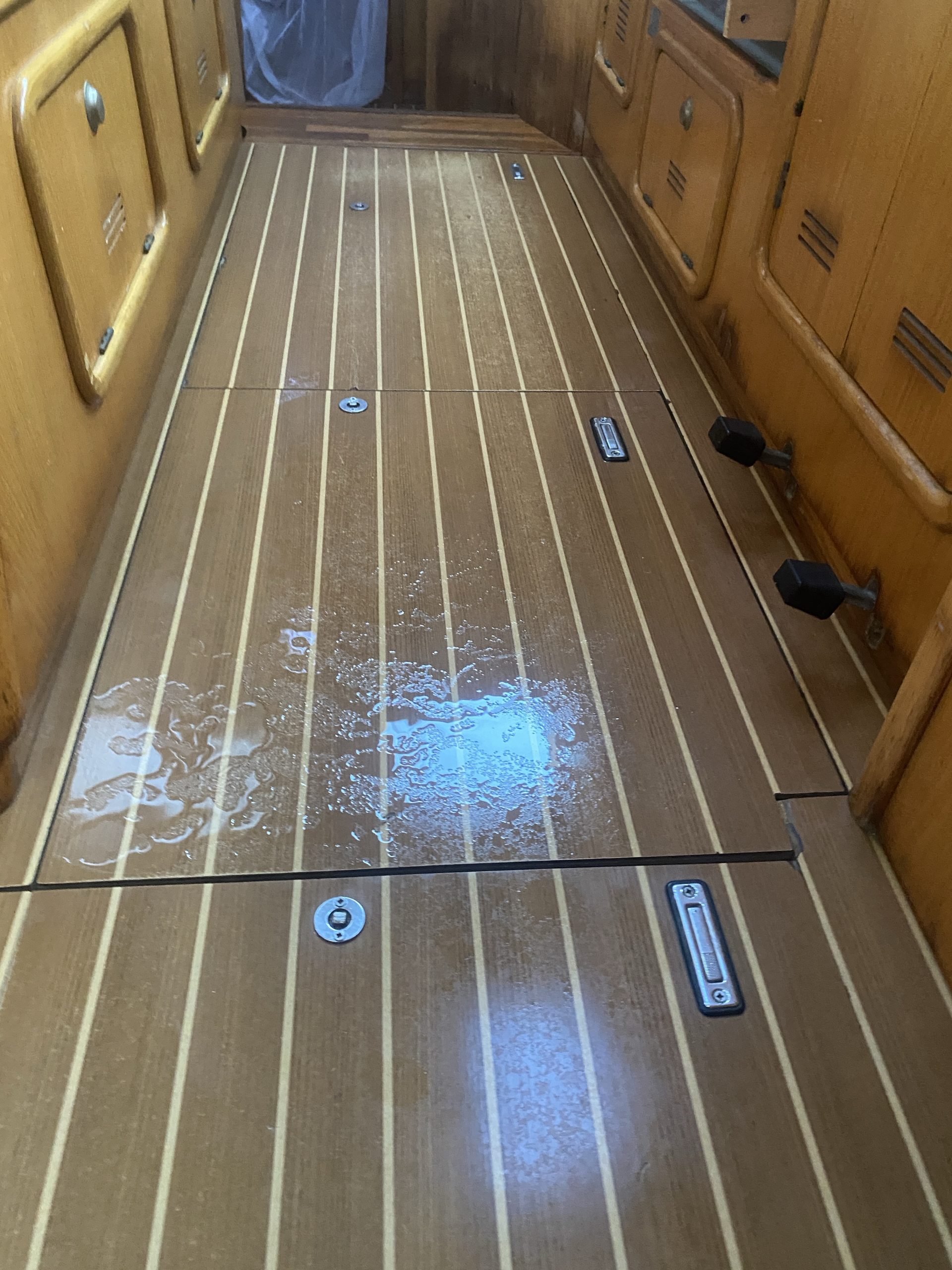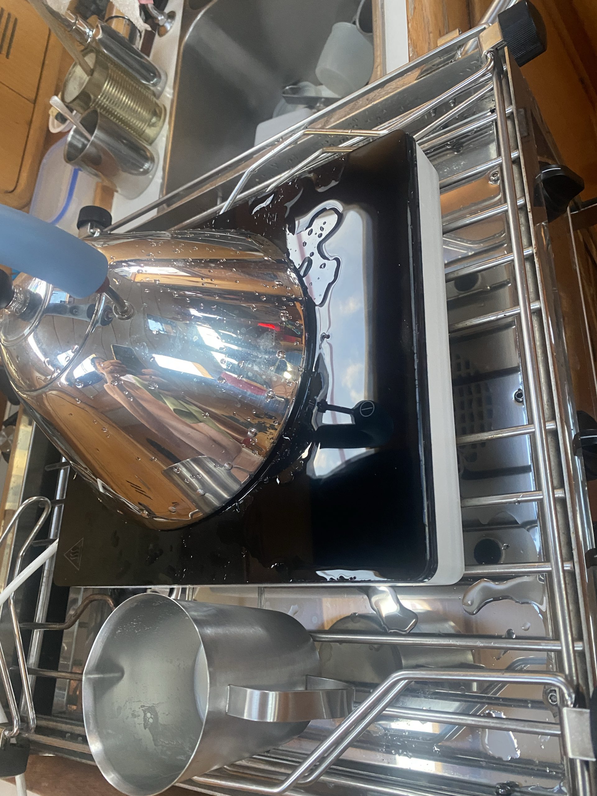 In der Nacht sind mehrere kleine Gewitter durch die Bucht gezogen. Es hat ordentlich geweht und wie aus Eimern gegossen. Wir haben die Luken zwar zugezogen jedoch nicht verriegelt. Am Morgen schwimmt das Boot von innen.