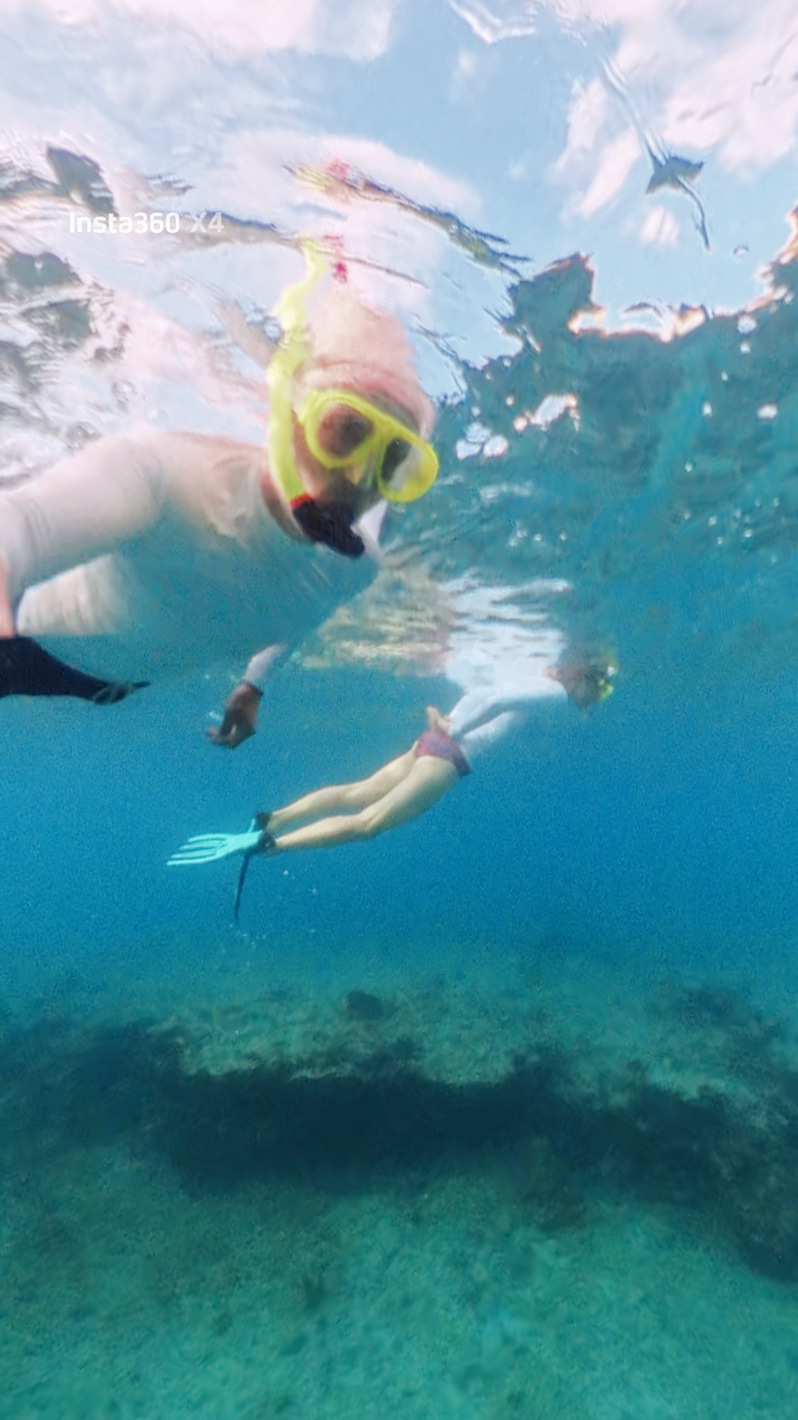 Beim Schnorcheln treffen wir, nachdem wir die Lage des Ankers kontrolliert haben, auf eine fast einen halben Meter große Schildkröte, die unter uns her schwimmt und am Seegras knabbert.