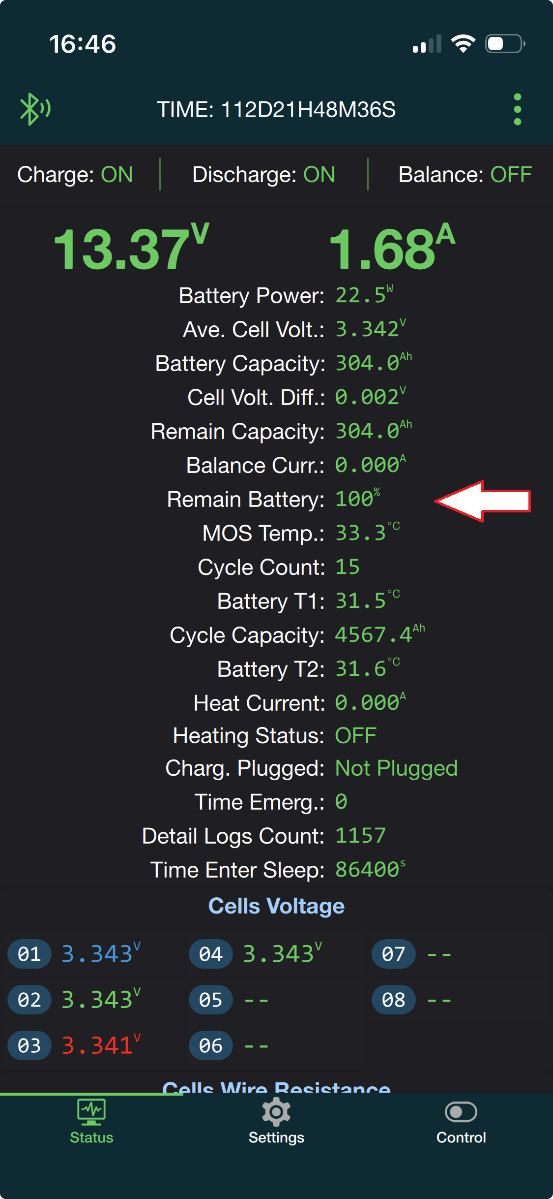 Das erste Mal in dieser Zeit sind unsere Batterien durch Solar- und Windenergie zu 100% geladen.