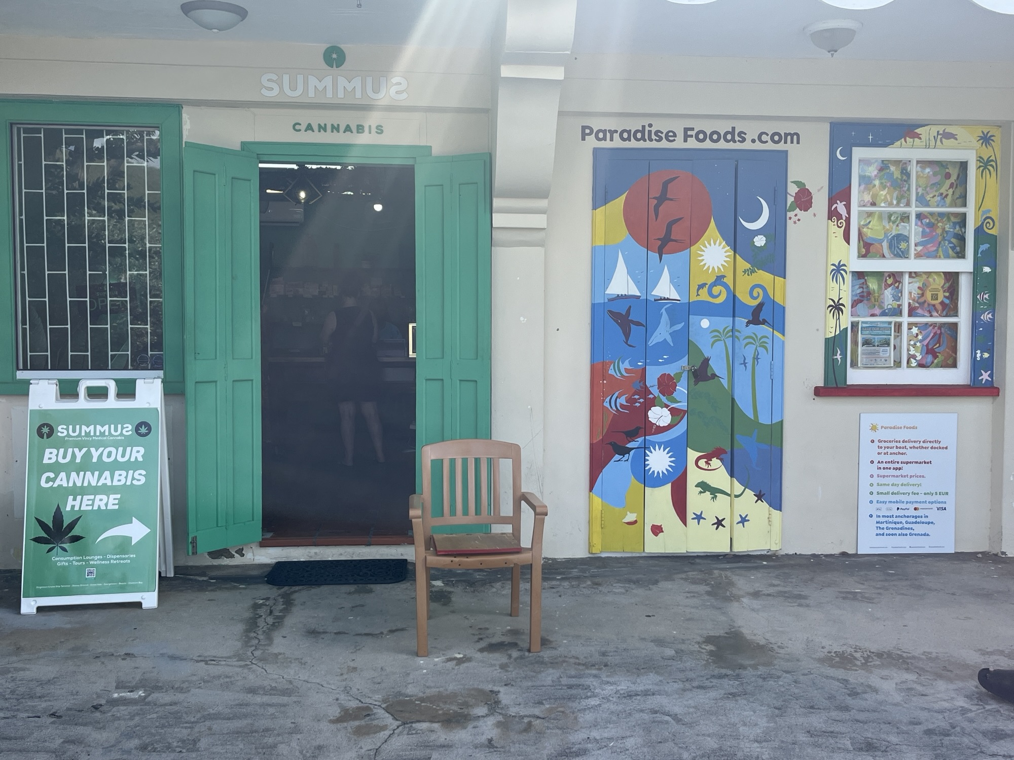 Heute ist ein bunter Tag. Wir beschließen in der Admiralty Bay in Bequia auszuklarieren und suchen das Büro von Customs and Immigration auf. Das Dinghi machen wir an einem der vielen Dinghidocks fest und gehen den Uferweg entlang. Dieser verläuft am Ufer der Bucht egal ob Sand, Fels oder Mauer vorhanden sind.