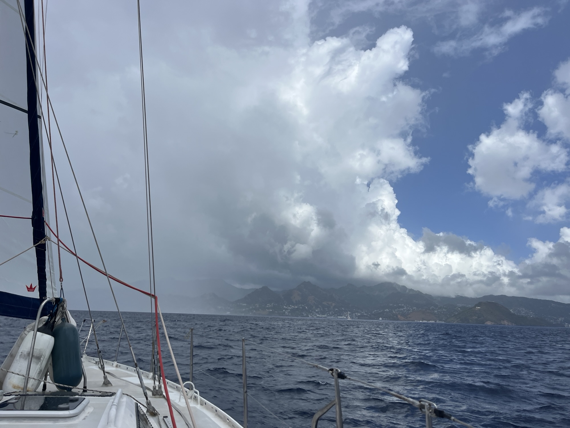 Der Mann heißt Holger und kommt vom Yogaunterricht. Er ist Diplpomat und war vor seiner Pensionierung deutscher Botschafter für Trinidad und Tobago. Wir sind zügig in ein Gespräch vertieft und werden eingeladen gemeinsam mit anderen den Abend in einem Restaurant auf Mount Pleasant zu verbringen. Da wir aber ausklariert haben und auf dem Weg nach Martinique sind, sagen wir schweren Herzens ab. Holger berichtet, dass mittlerweile 170 Kreuzfahrtschiffe pro Jahr Bequia anlaufen, manchmal liegen zwei Schiffe gleichzeitig am Steg. Bequia sei die friedlichste und sicherste der karibischen Inseln.