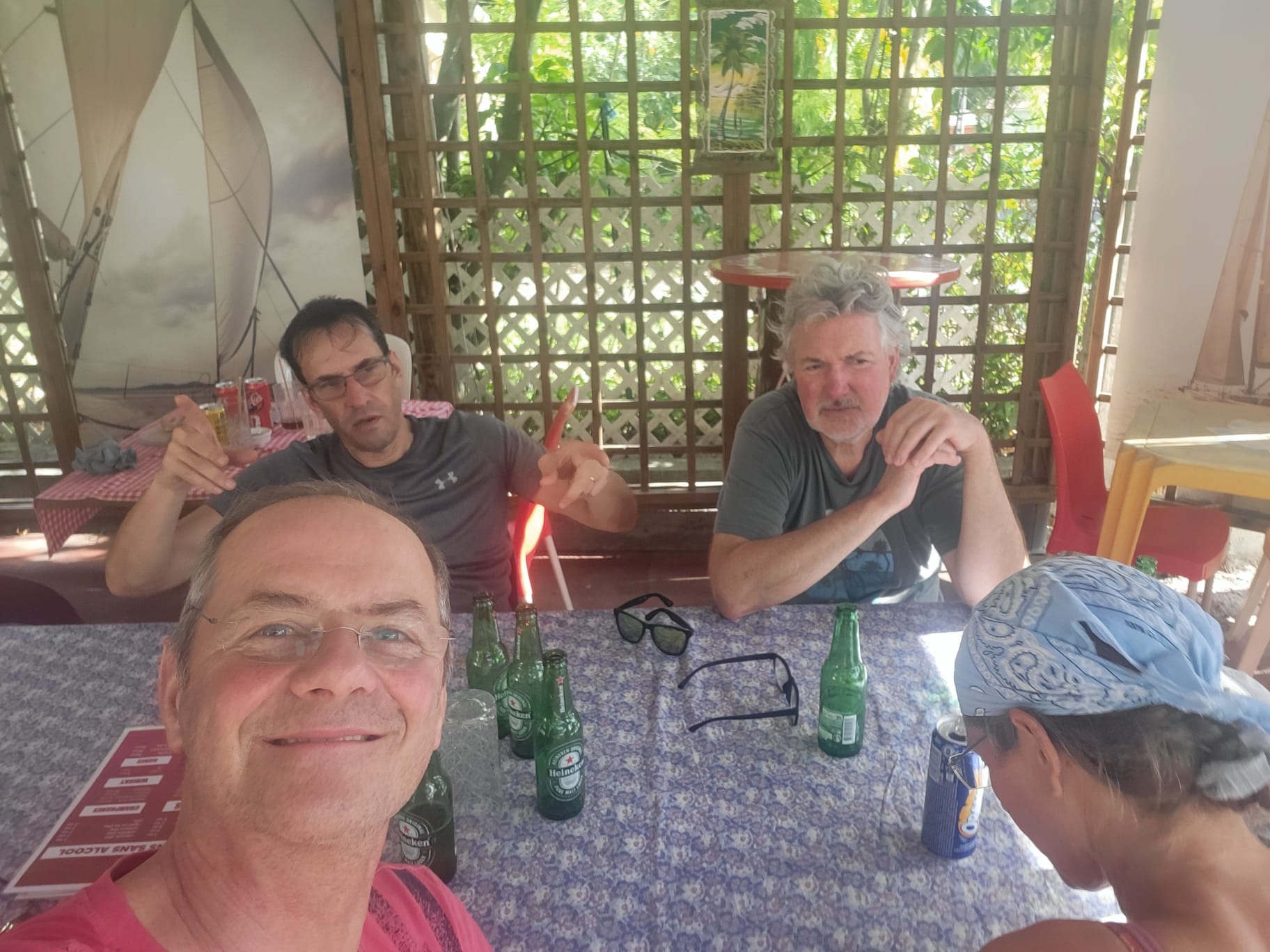 Wir schnorcheln und essen danach im Hafenrestaurant um den Tag in Ruhe ausklingen zu lassen. Auf dem Weg zurück fängt uns der Grillmeister winkend und rufend an der Mole ab, weil eine Tasche hängen geblieben sei. Da er dies auf Creol-Französisch von sich gibt und die Tasche nicht dabei hat, erkennen wir nicht, dass es unsere ist obwohl wir den Inhalt des Transport-Rucksackes durchsehen. Erst an Bord fällt auf, dass eine Bauchtasche fehlt.
