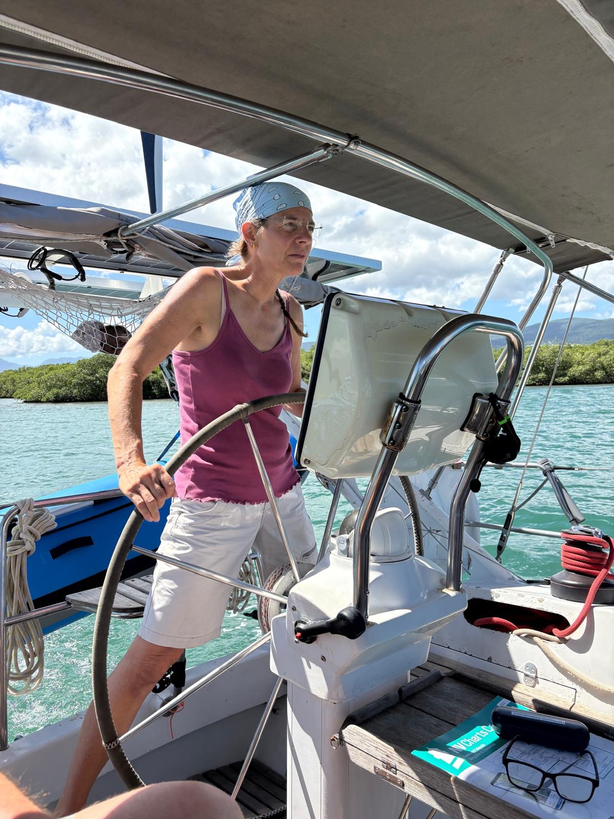 Um für die „große“ Mannschaft ordentlich einkaufen zu können und Philipp abzuholen, verholen wir nach Baie Mahault. Durch die Mangroven zu schippern hat seine Tücken, da es sehr viele sehr flache Stellen gibt und die Bereiche, die trocken liegen, nicht immer auf Anhieb gut zu erkennen sind.