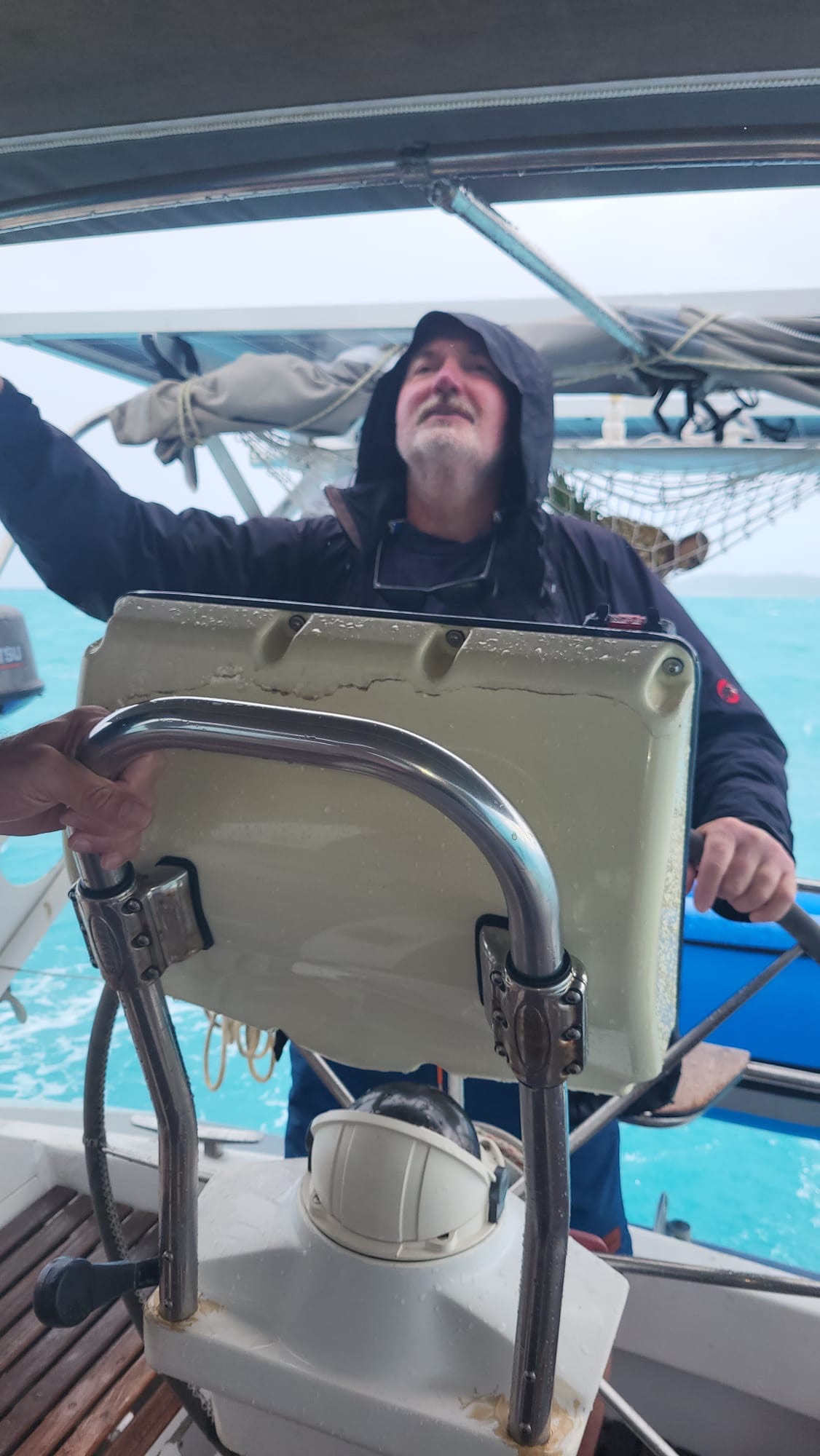 Interessanterweise kommt nun im Süden der Insel der Wind auch gegenan. Der Motor und der Wassermacher laufen um die Wette und bringen uns voran bzw. versorgen uns.