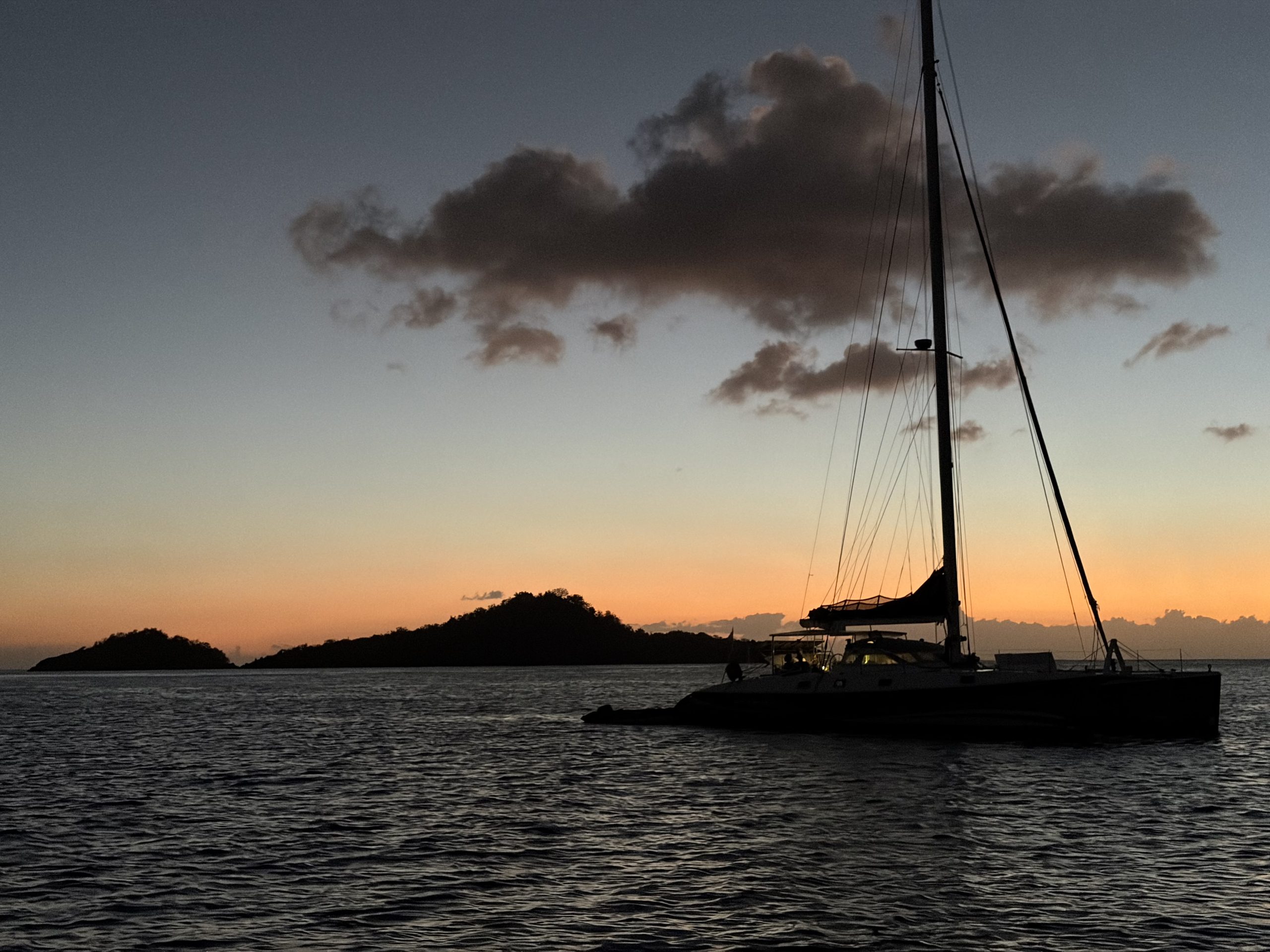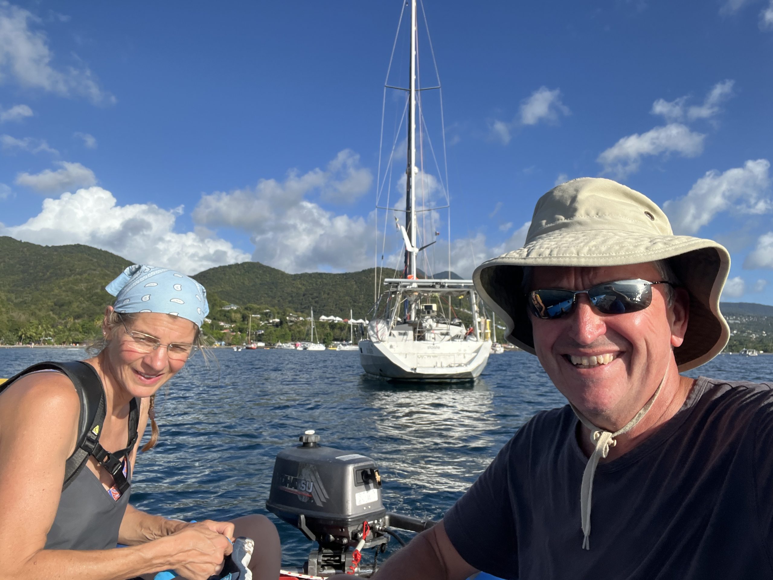 Morgens machen wir erst einmal klar Schiff. An allen Stellen findet sich Sand, den wir bei unserem Dinghy Strandabenteuer mitgenommen haben. Wir segeln ganz gemütlich südwärts zum Jaques Costeau Nationalpark und spielen dabei das Luke-zu-Luke-auf-Spiel, da es immer wieder schauert. Der Wind wechselt von nicht vorhanden auf 20kt oder in Böen 25kt, trotzdem kommen wir gut voran. Das Wechselspiel ist ohnehin nicht zu beeinflussen. Nach etwa zwei Stunden erreichen wir die Bucht von Malendure. Dort ankern wir auf etwa 7m. Schnell machen wir das Dinghy bereit und fahren an den kleinen Anleger, der von vielen Tauchbooten, welche den Jacques Cousteau Park befahren genutzt wird.