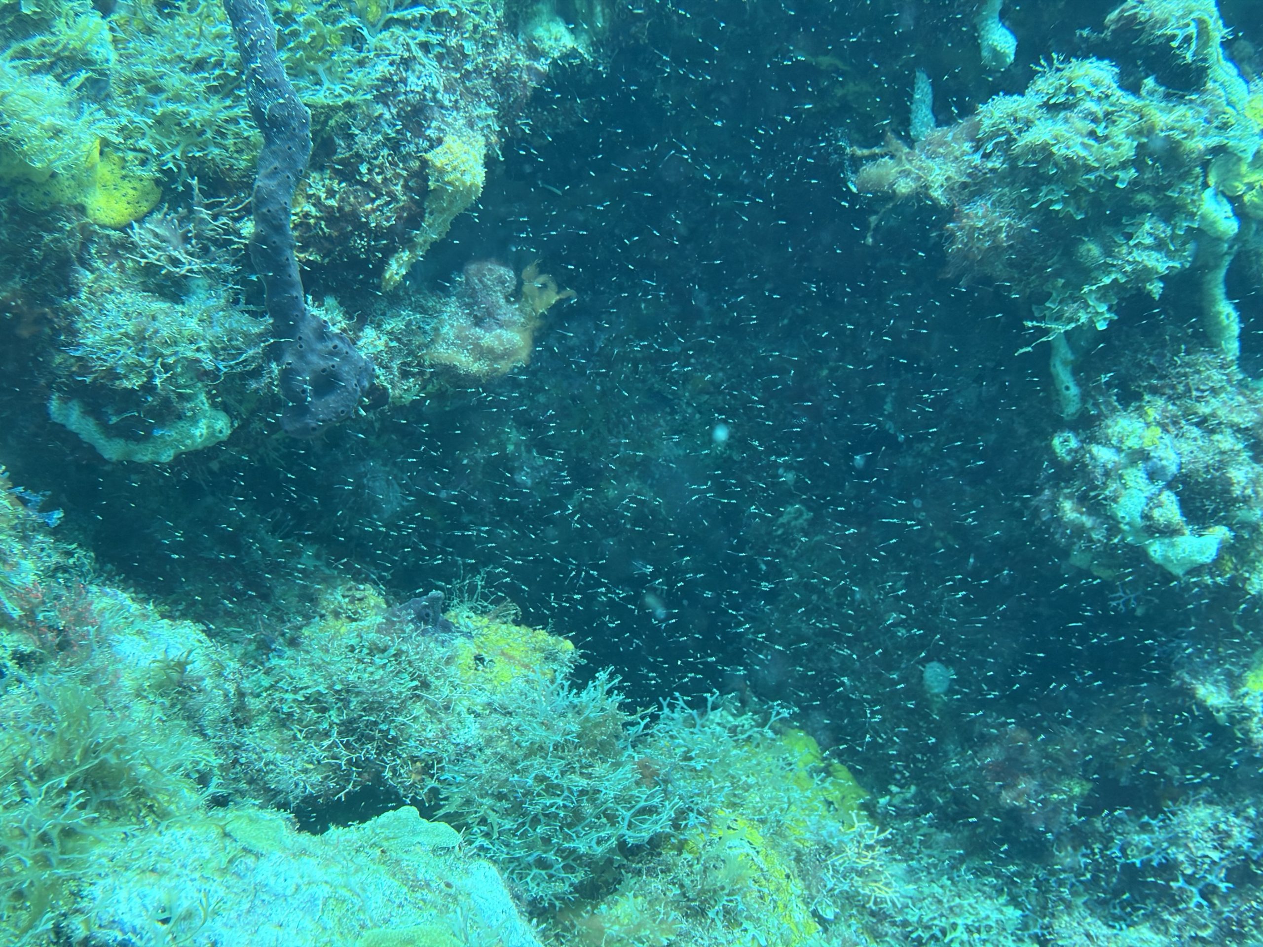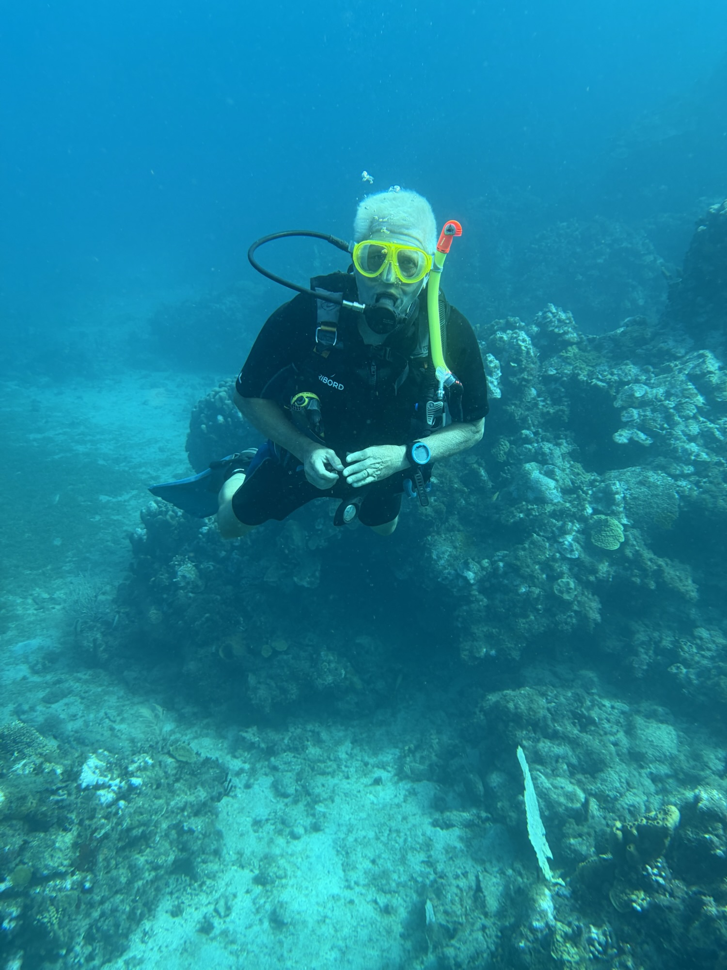 Wir tauchen den ersten „richtigen“ Tauchgang gemeinsam ohne Übungen und spezielle Anleitungen. Natürlich kann dies nicht so flüssig ablaufen wie nach doppelt oder dreimal so vielen Tauchgängen, aber für diesen Übungsstand klappt es echt gut.