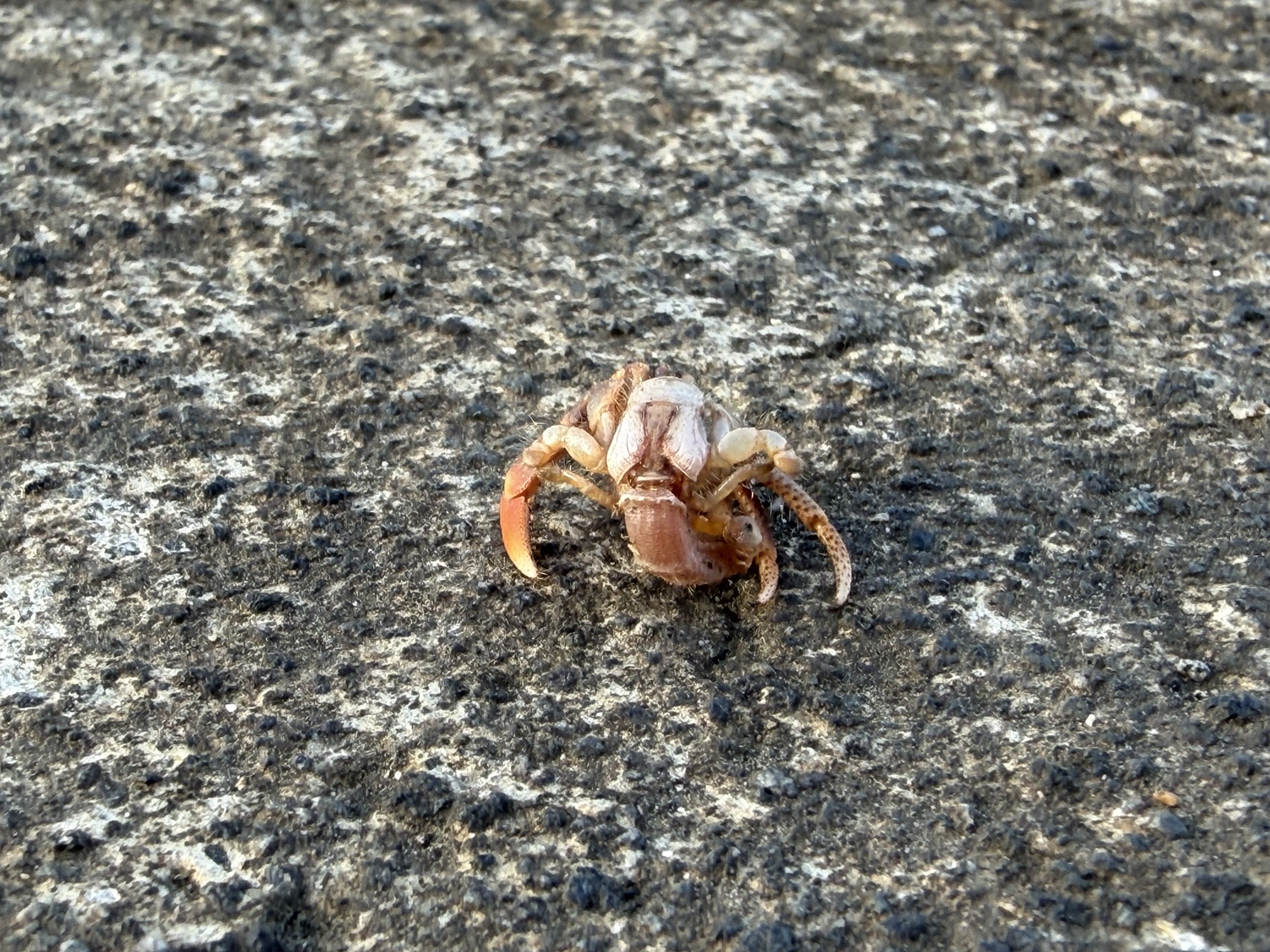 Krebse graben sich aus ihrer Löchern und laufen über den Sand. Sie sind ganz schön schnell und deswegen schwierig zu photographieren.