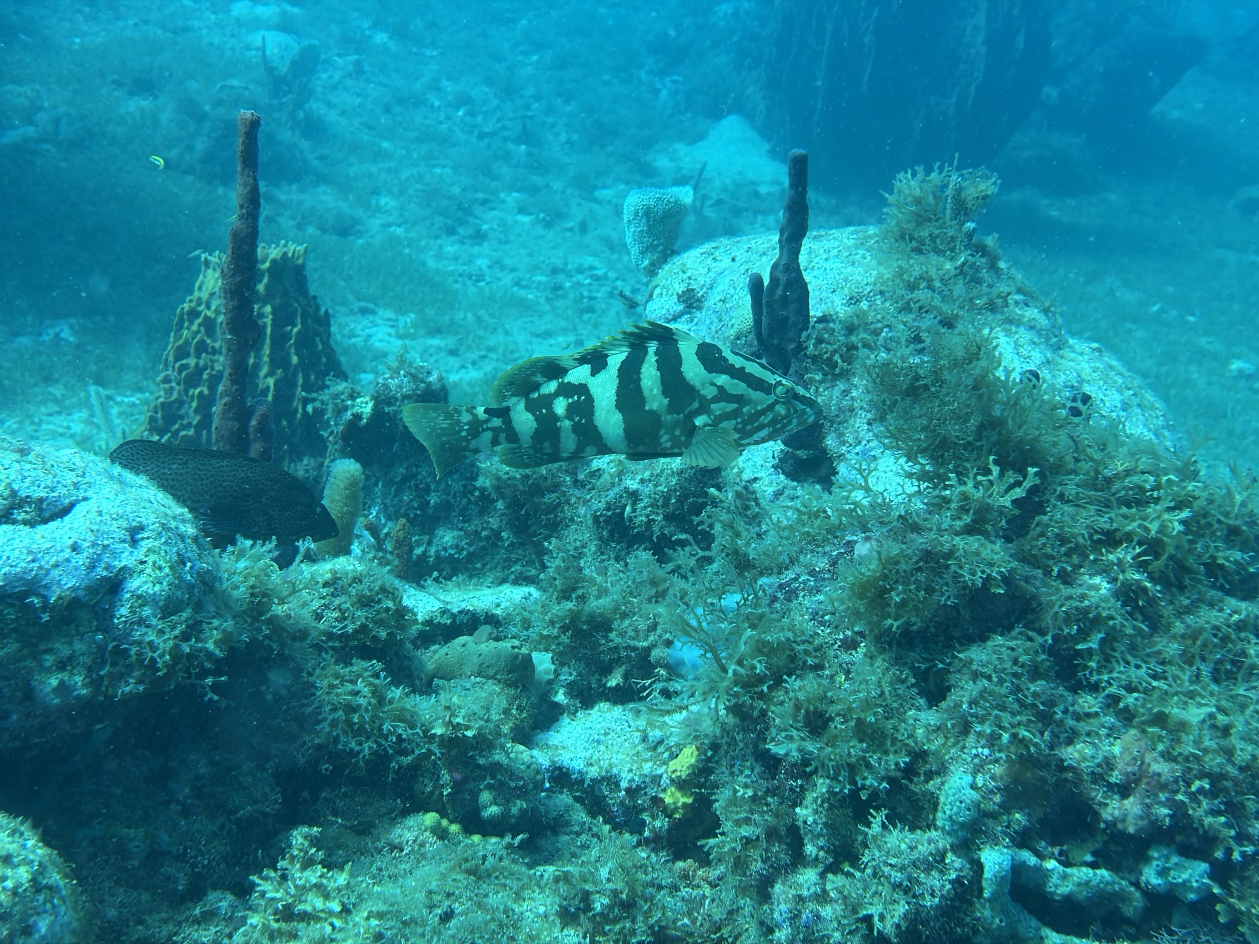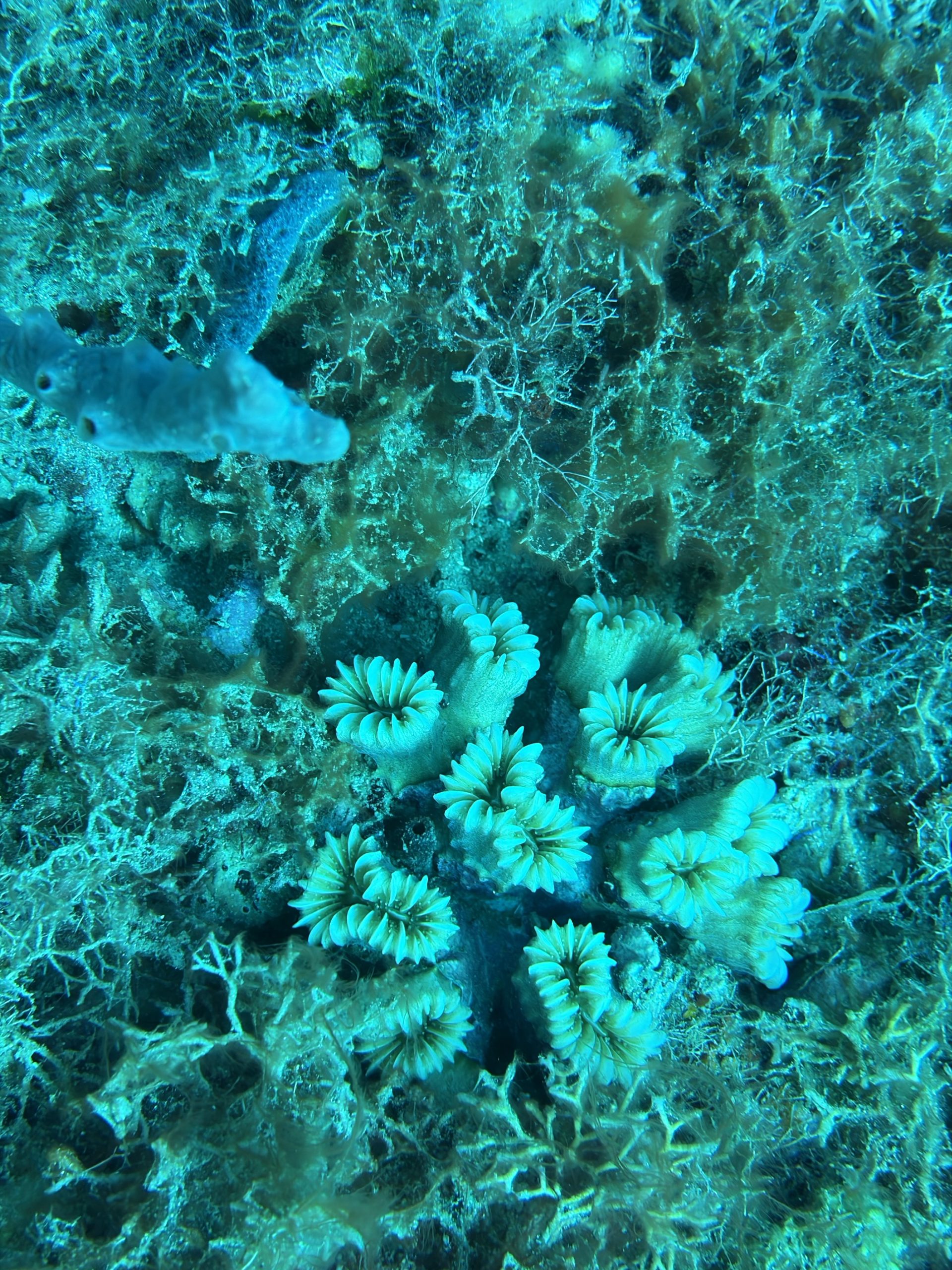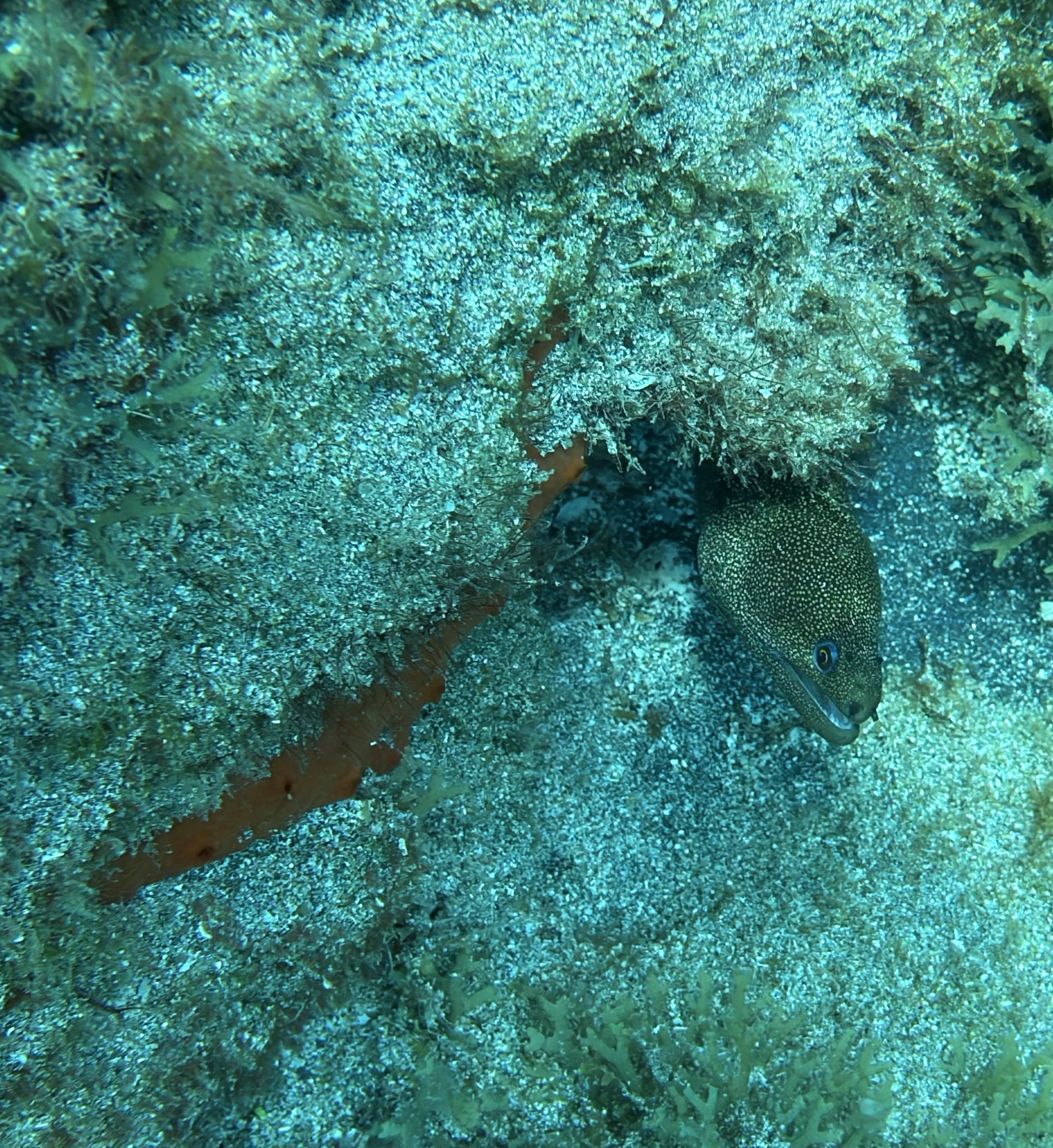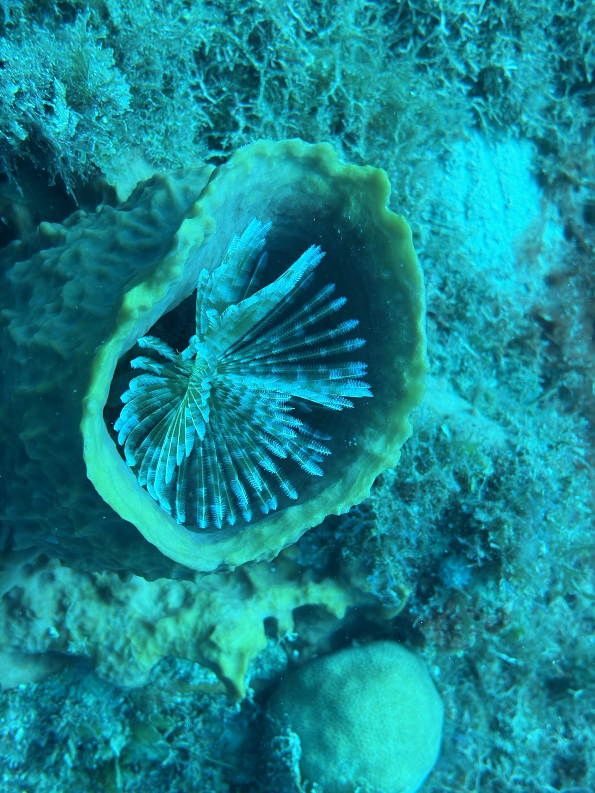 Nach dem Tauchen fahre ich diesmal nicht zurück aufs Boot. Ich habe vorher schon alles eingepackt um mit Andrea und Helmut die warme schwefelhaltige Quelle „Bain Chaud de Thomas“ zu besuchen. Diese Thermalquelle ergießt sich ins Meer und heizt es ordentlich auf. Mal fließt ein wenig kälteres oder auch deutlich wärmeres Wasser an einem vorbei. An der Stelle an der das Wasser mit mehr als 70 Grad Celsius aus der Insel fließt, sind Warntafeln aufgestellt, weil es so heiß ist, dass man sich verbrennen kann. Nach einer Dreiviertelstunde im Wasser haben wir genug. Wir kaufen für den Pizzaabend ein und fahren zurück in das Appartment der beiden.