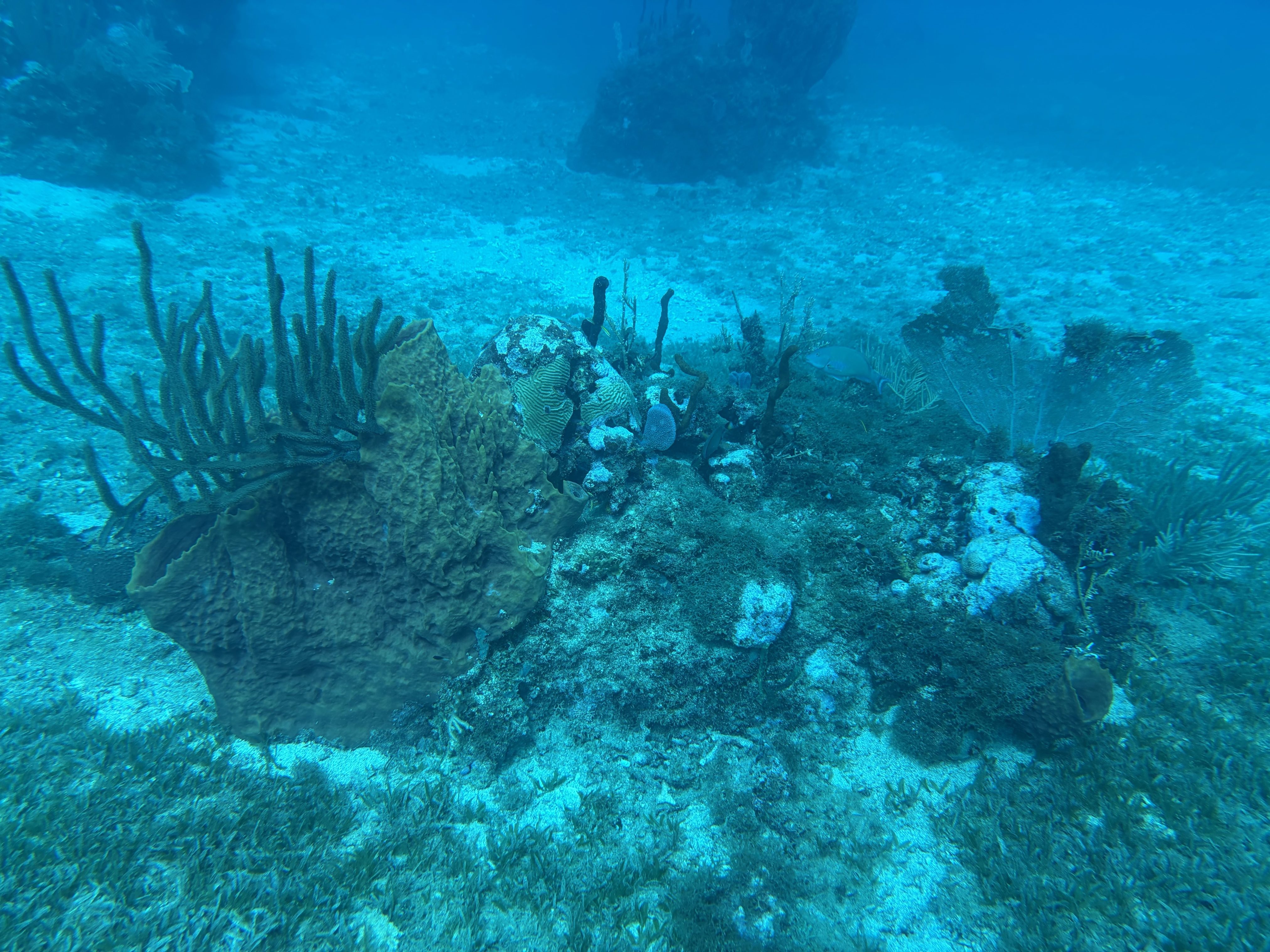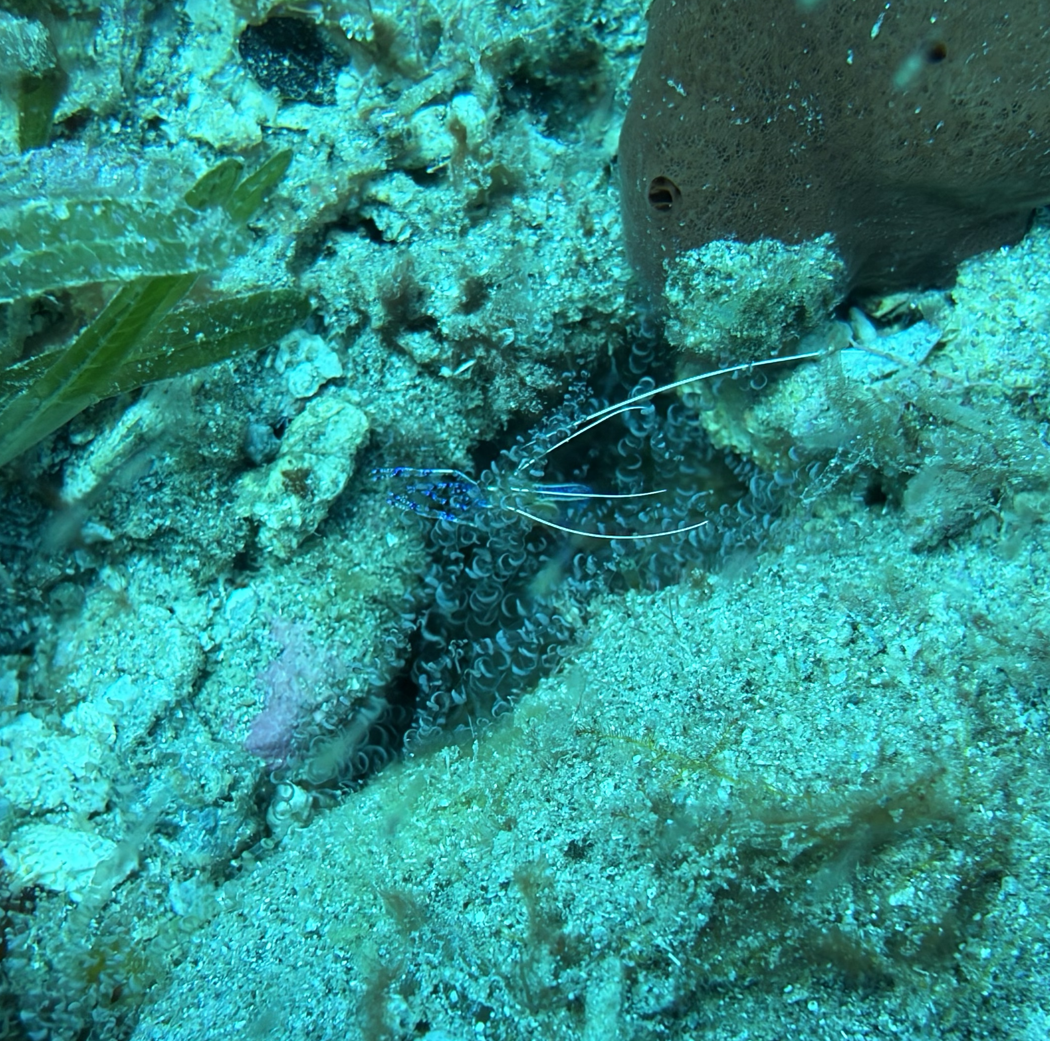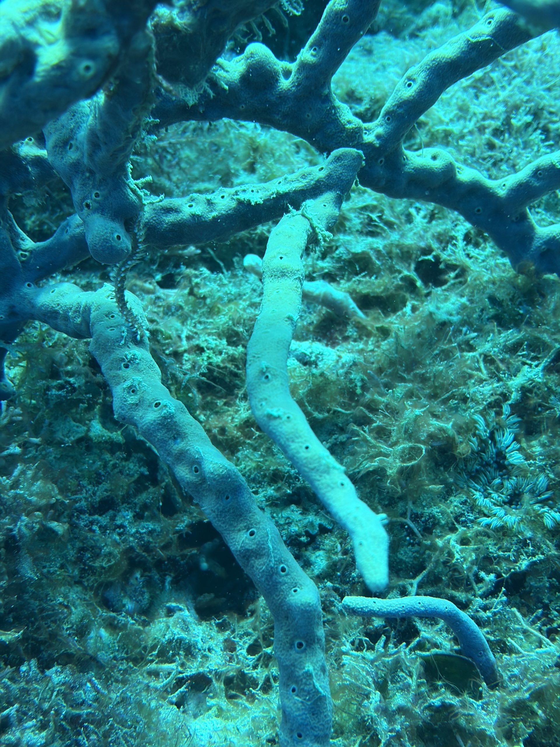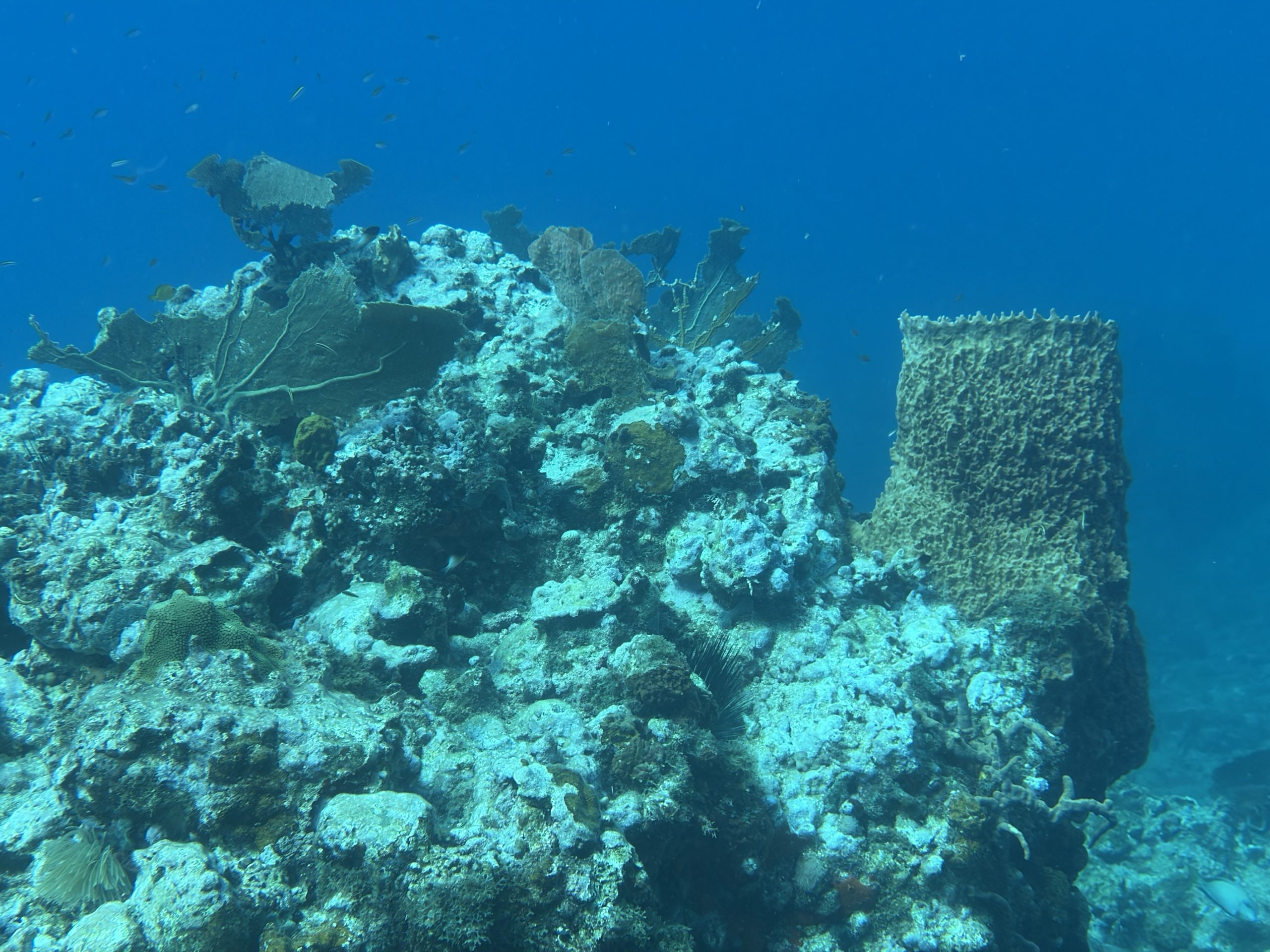 Nach dem Tauchen fahre ich diesmal nicht zurück aufs Boot. Ich habe vorher schon alles eingepackt um mit Andrea und Helmut die warme schwefelhaltige Quelle „Bain Chaud de Thomas“ zu besuchen. Diese Thermalquelle ergießt sich ins Meer und heizt es ordentlich auf. Mal fließt ein wenig kälteres oder auch deutlich wärmeres Wasser an einem vorbei. An der Stelle an der das Wasser mit mehr als 70 Grad Celsius aus der Insel fließt, sind Warntafeln aufgestellt, weil es so heiß ist, dass man sich verbrennen kann. Nach einer Dreiviertelstunde im Wasser haben wir genug. Wir kaufen für den Pizzaabend ein und fahren zurück in das Appartment der beiden.