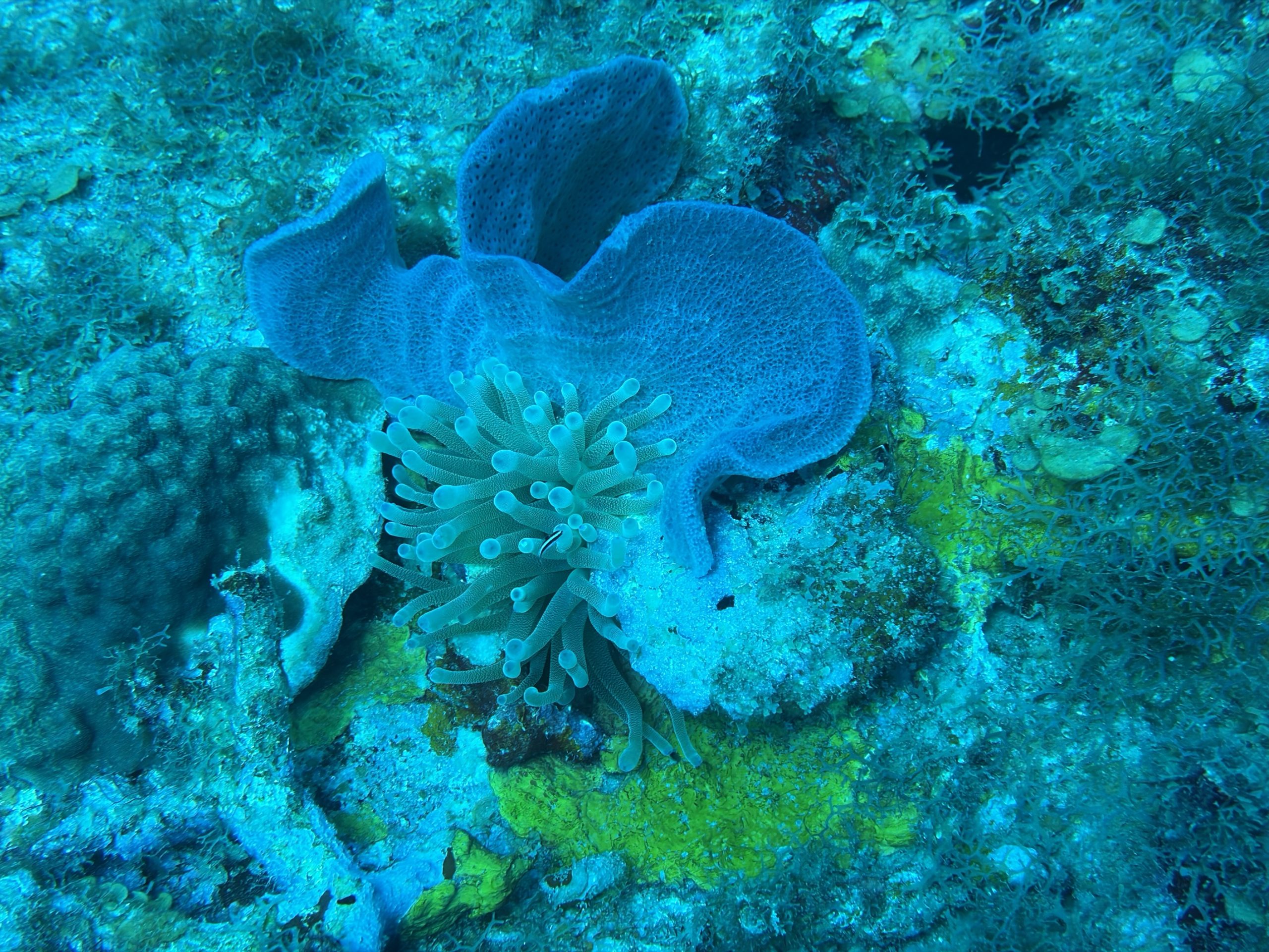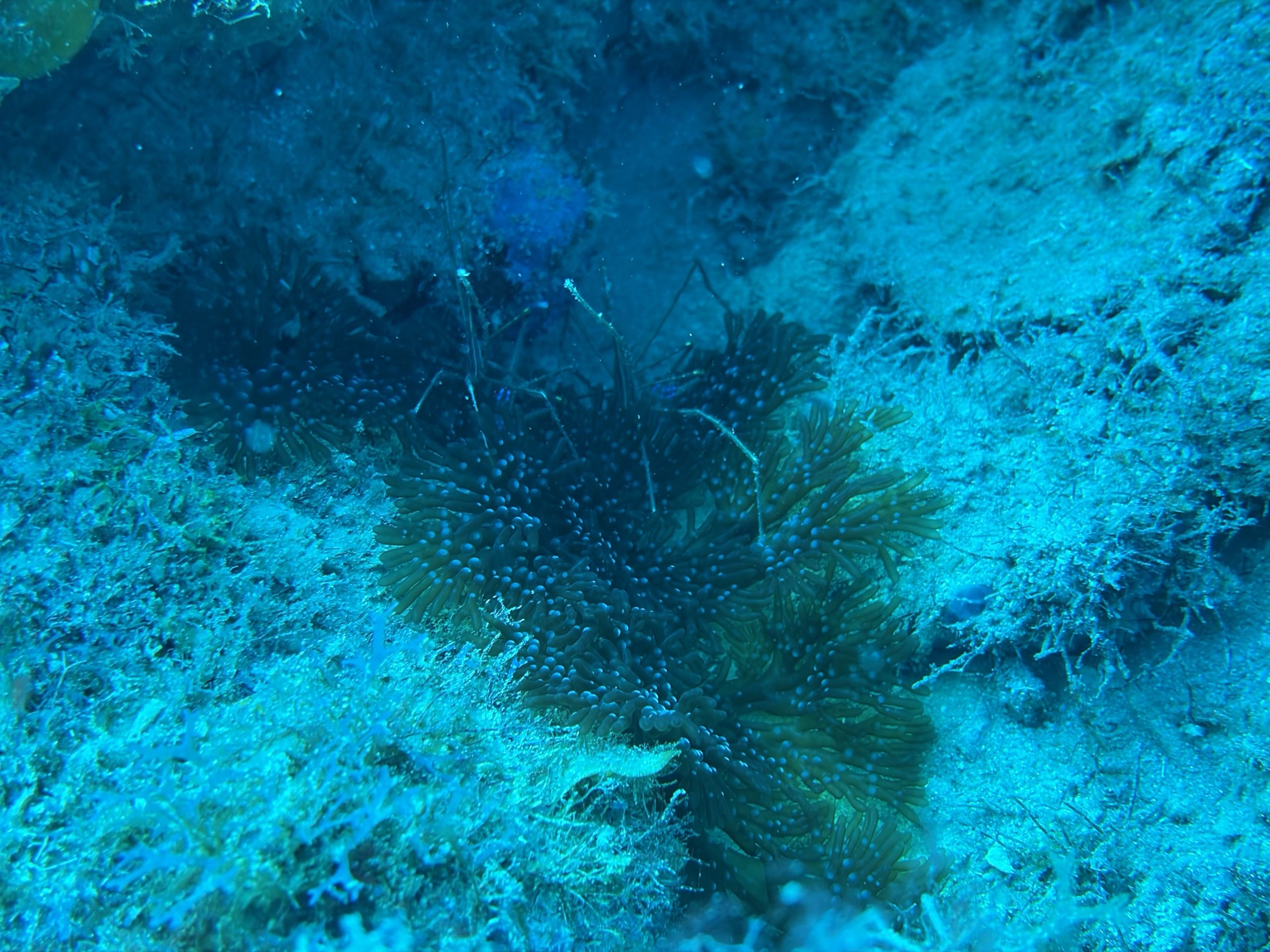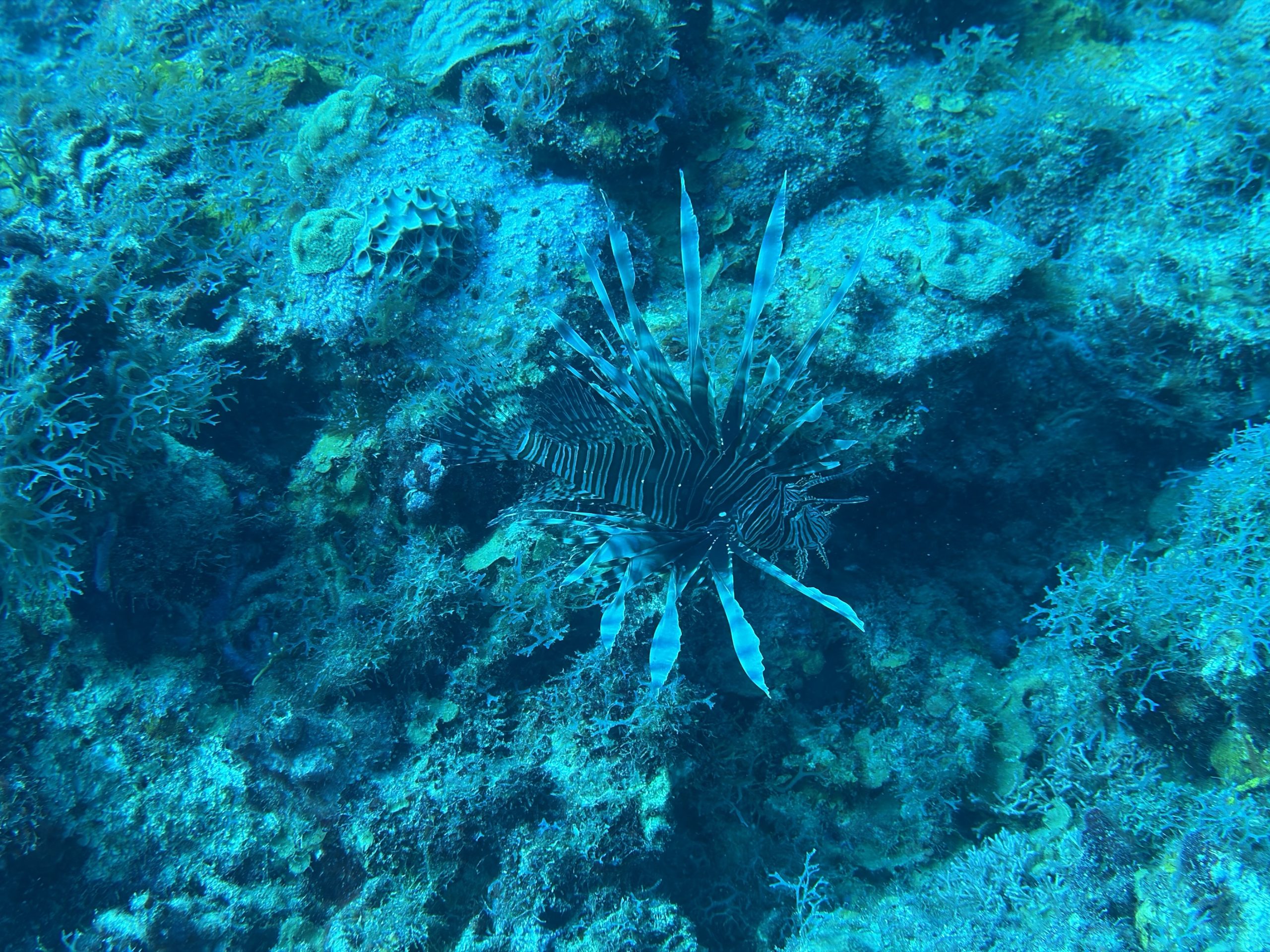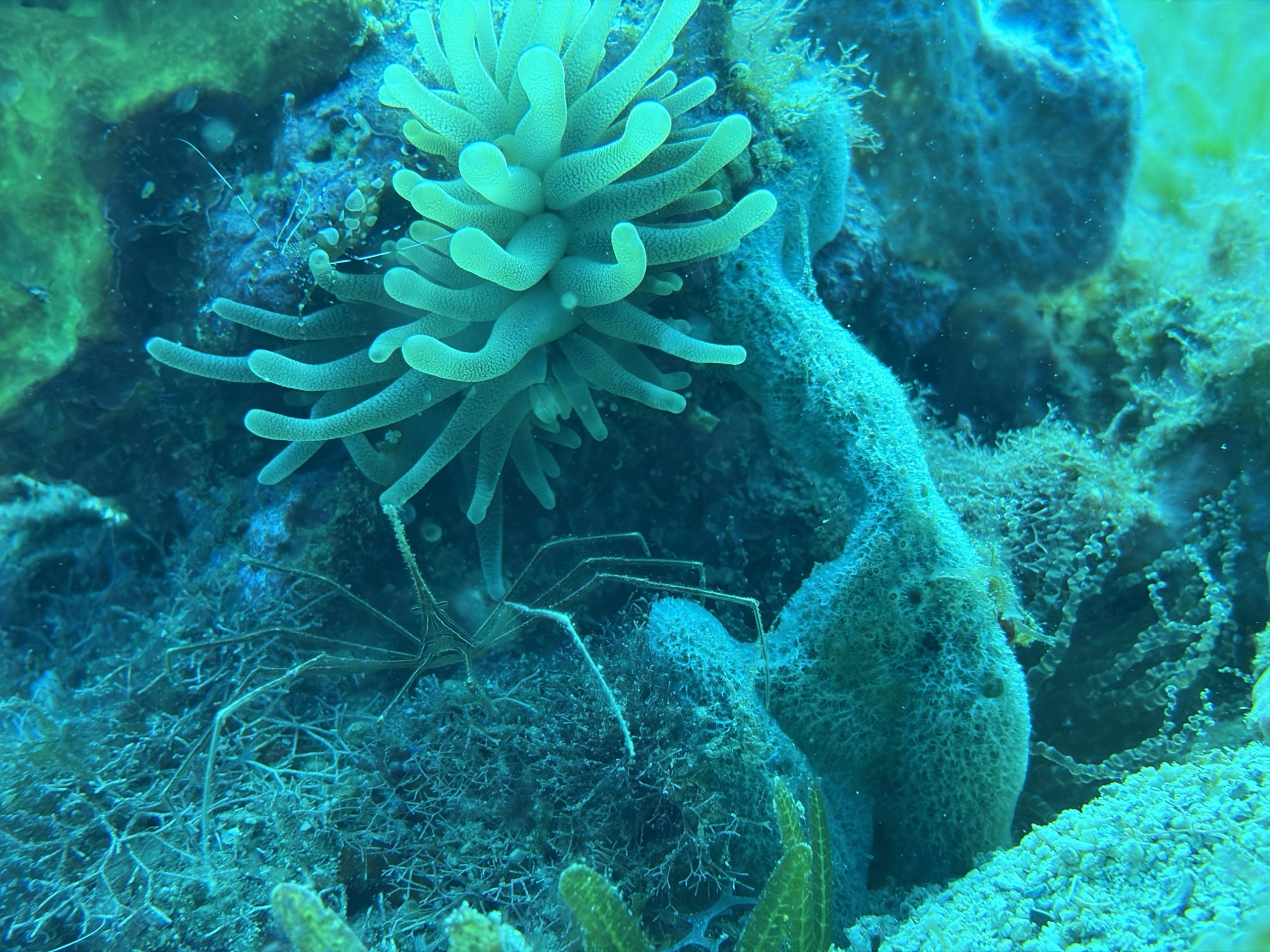 Die beiden Tauchgänge heute waren sehr entspannt. Wir haben viel gesehen, das Wasser ist durch die Sonne hell beleuchtet und klar. Schon am Morgen, aber auch während der Oberflächenpause, ist es brütend heiß, kein Lüftchen regt sich. Wir brauchen nicht einmal ein Handtuch, trotzdem sind alle entspannt. Da die anderen drei Taucher Amerikaner sind, gibt es heute kein Sprachenwirrwarr. Das heißt aber nicht, das sie besser zu verstehen sind. So richtiges American-English fordert das Ohr schon gewaltig.