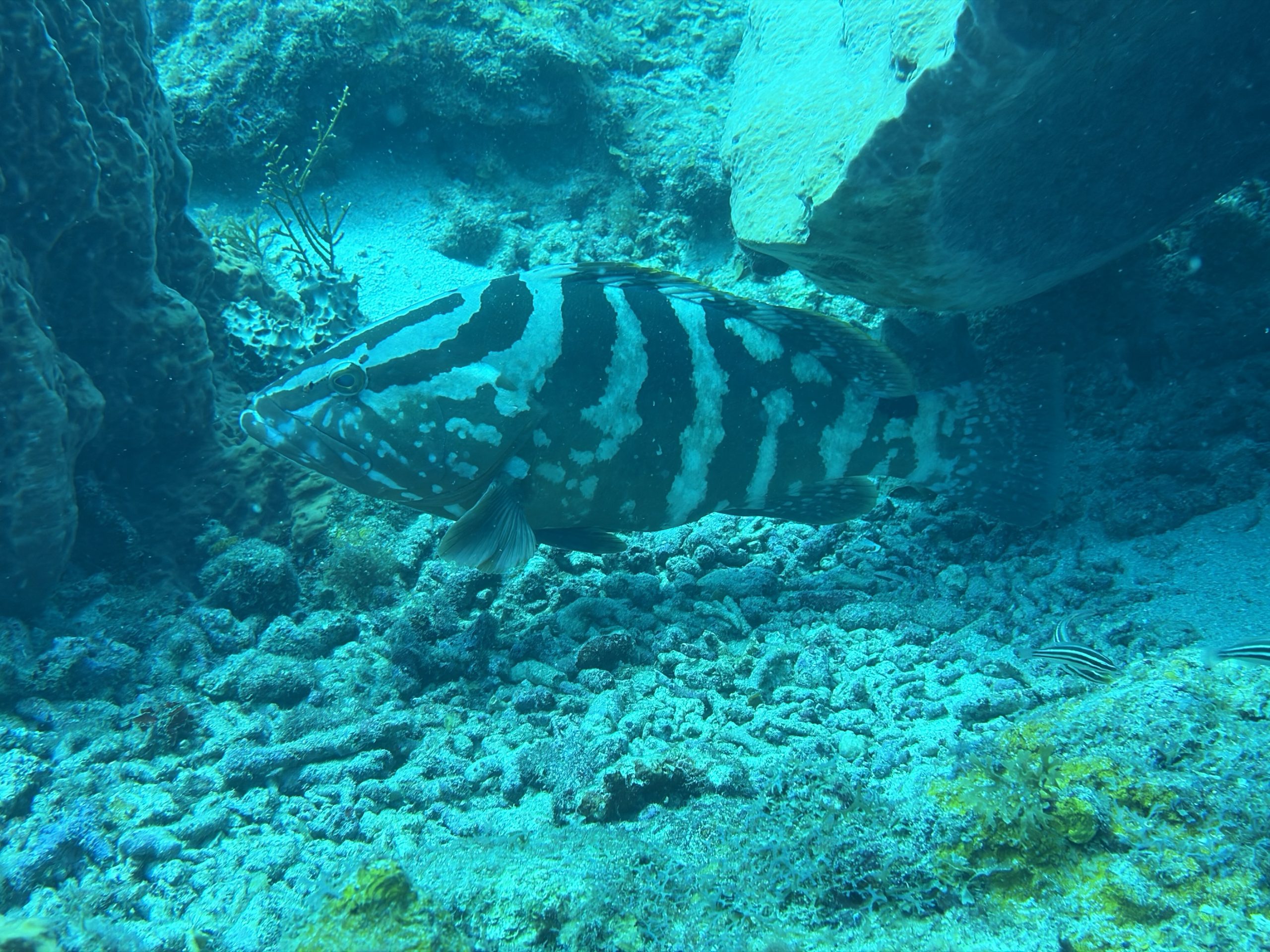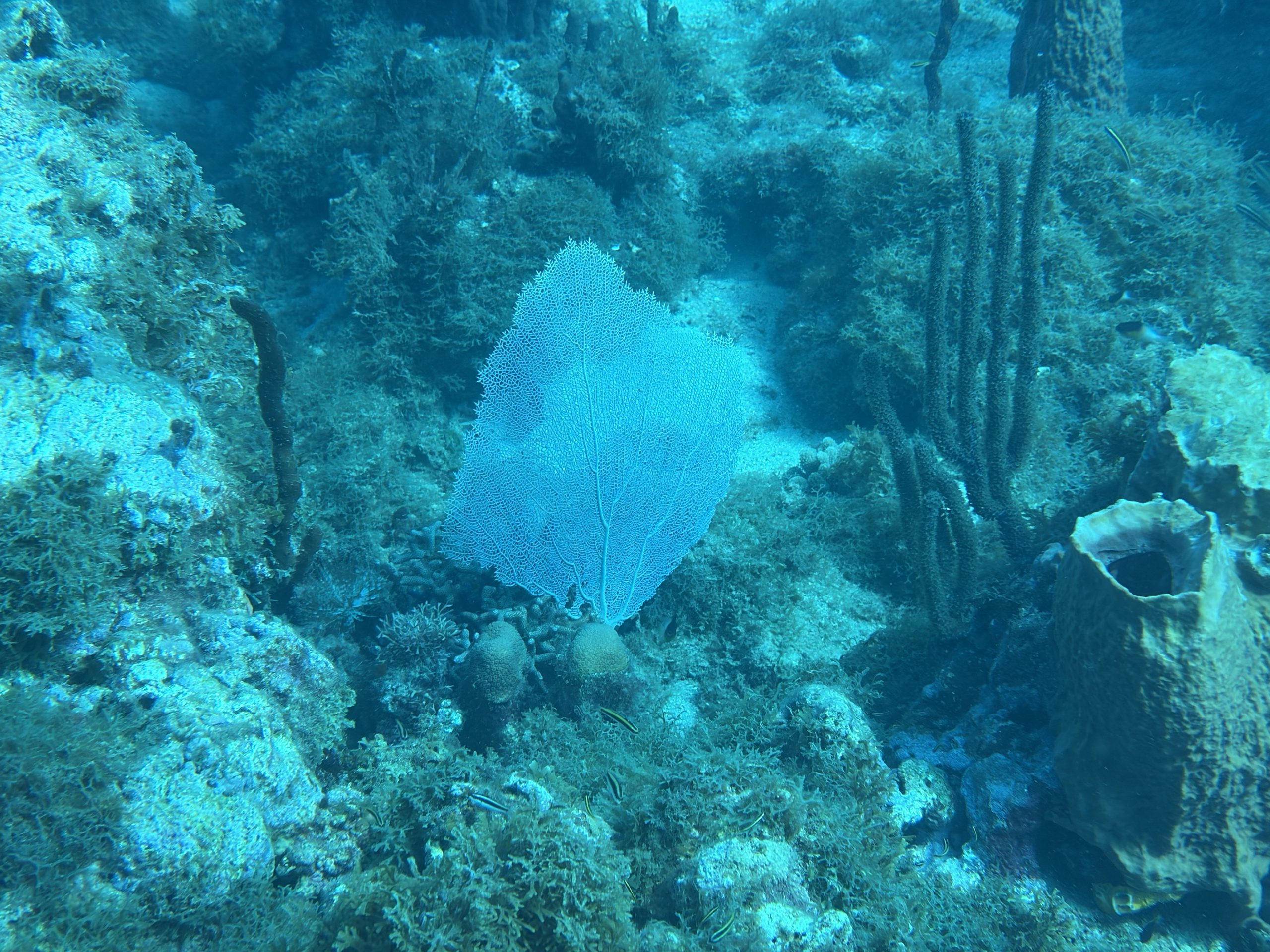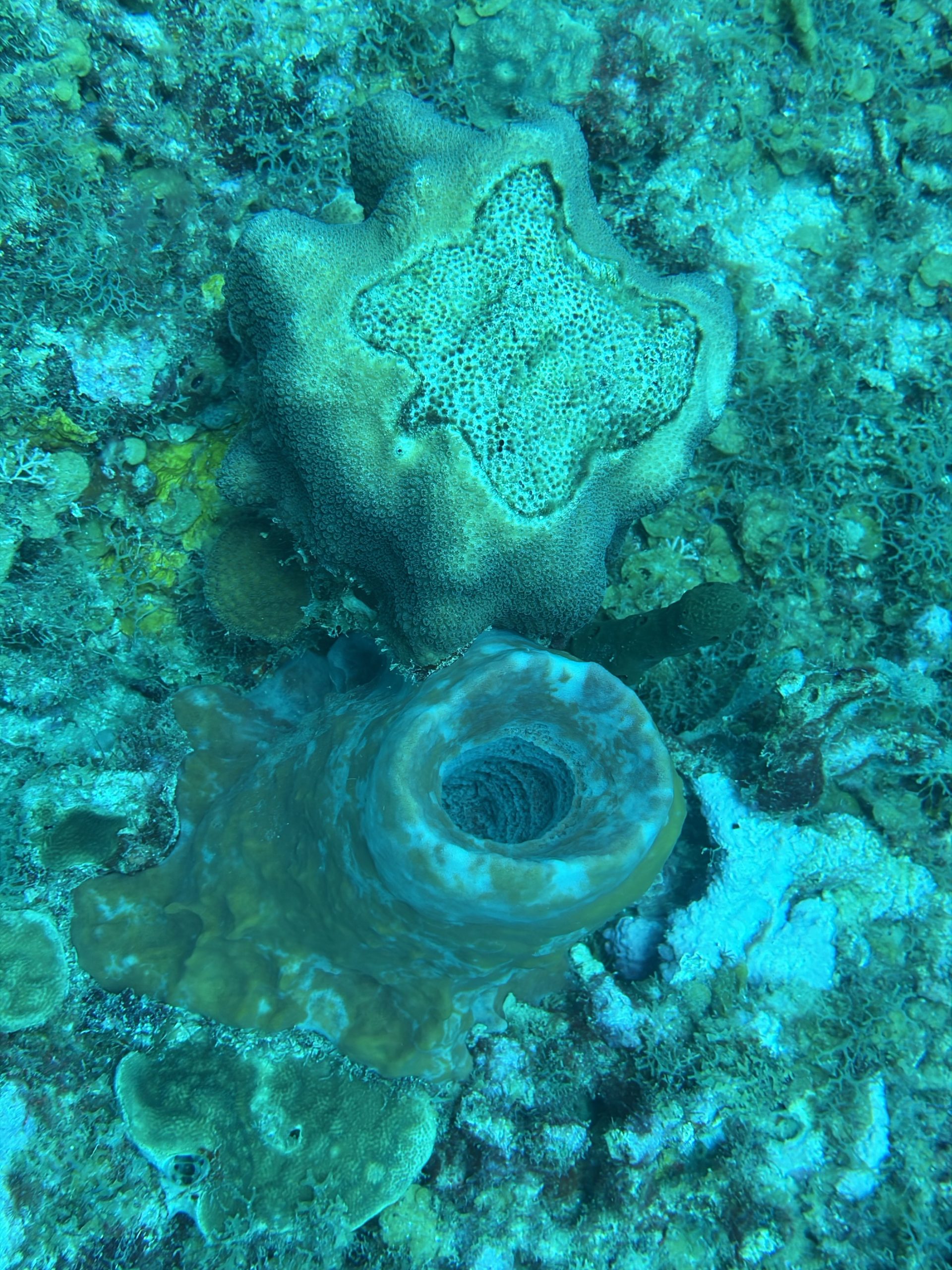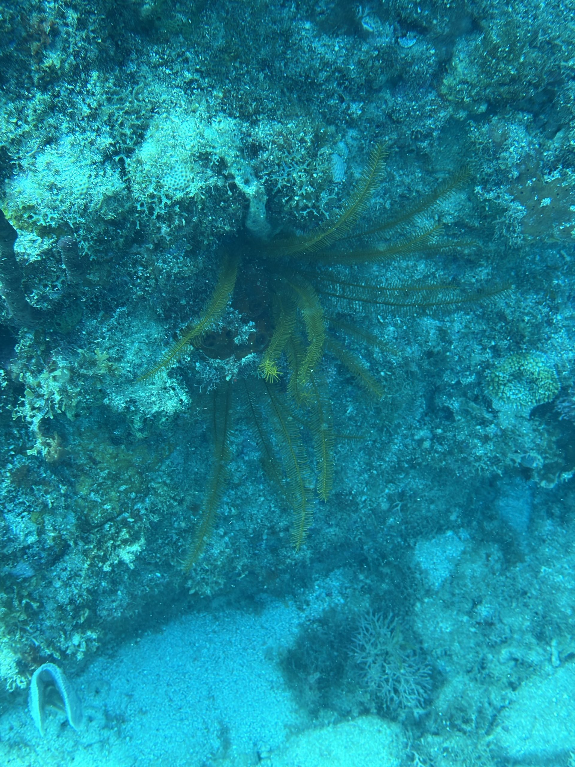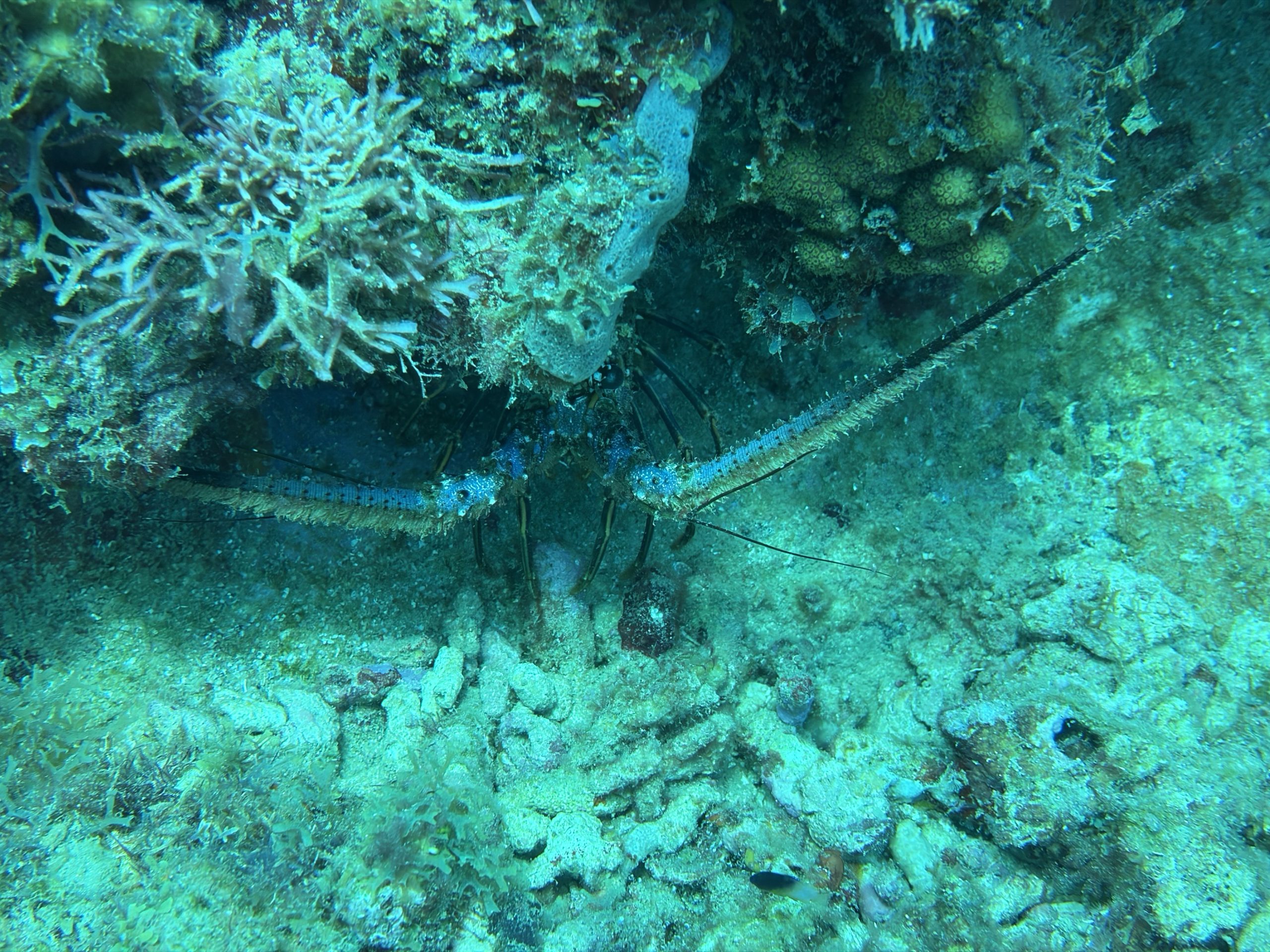 Die beiden Tauchgänge heute waren sehr entspannt. Wir haben viel gesehen, das Wasser ist durch die Sonne hell beleuchtet und klar. Schon am Morgen, aber auch während der Oberflächenpause, ist es brütend heiß, kein Lüftchen regt sich. Wir brauchen nicht einmal ein Handtuch, trotzdem sind alle entspannt. Da die anderen drei Taucher Amerikaner sind, gibt es heute kein Sprachenwirrwarr. Das heißt aber nicht, das sie besser zu verstehen sind. So richtiges American-English fordert das Ohr schon gewaltig.